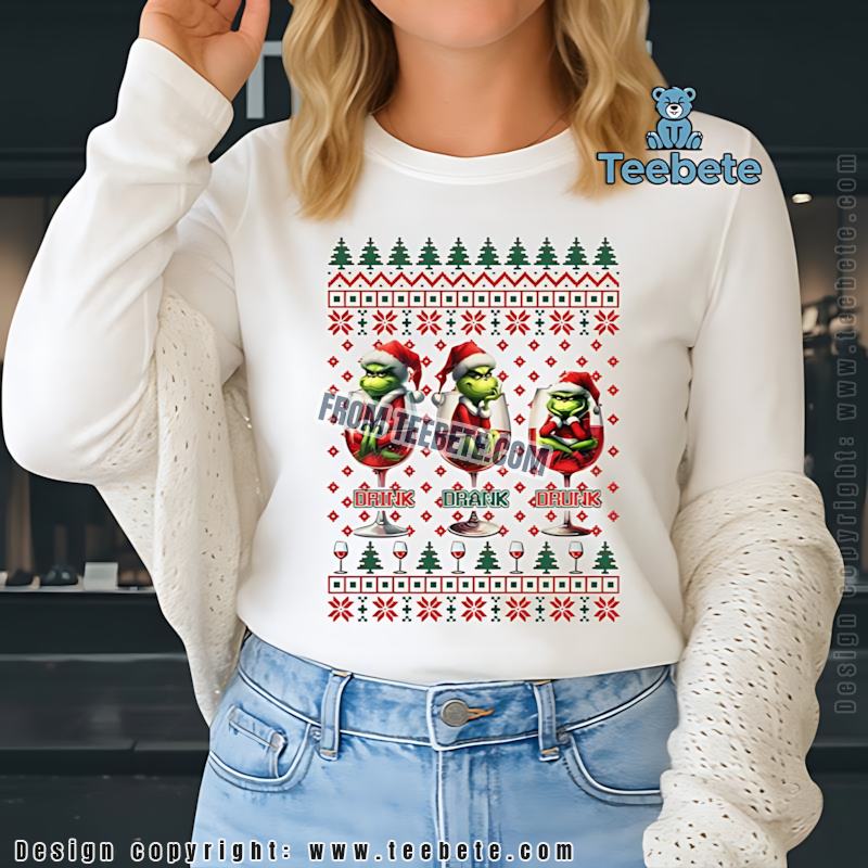 Don’t miss the opportunity to add this festive piece to your collection! Whether for yourself or as a perfect gift for a fellow fan, the Grinch Drink Drank Drunk Ugly Christmas Sweater Style Shirt will surely spread joy and laughter this holiday season. Get yours today and embrace the spirit of the Grinch!
