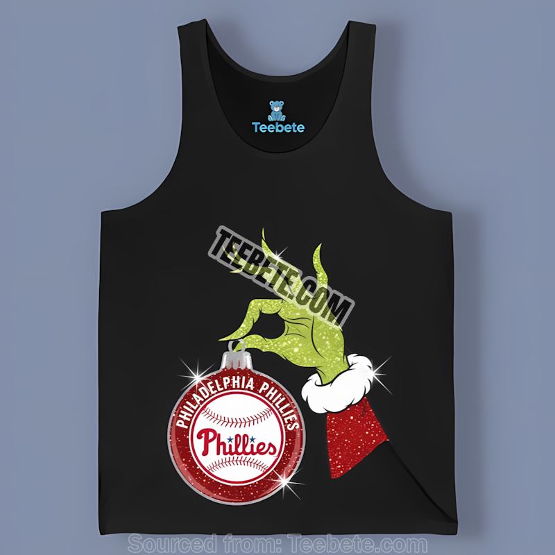 This Teebete Grinch Hand Holding Ornament Philadelphia Phillies Regular Shirt perfectly captures the playful spirit of the holiday season, blending the beloved Grinch with the passionate energy of the Philadelphia Phillies. Inspired by the classic Dr. Seuss character’s unexpected transformation and the unwavering loyalty of Phillies fans, this design is a unique way to celebrate Christmas and your team pride all at once. The whimsical image of the Grinch’s hand delicately holding a miniature Phillies ornament is sure to spark conversations and smiles wherever you go.