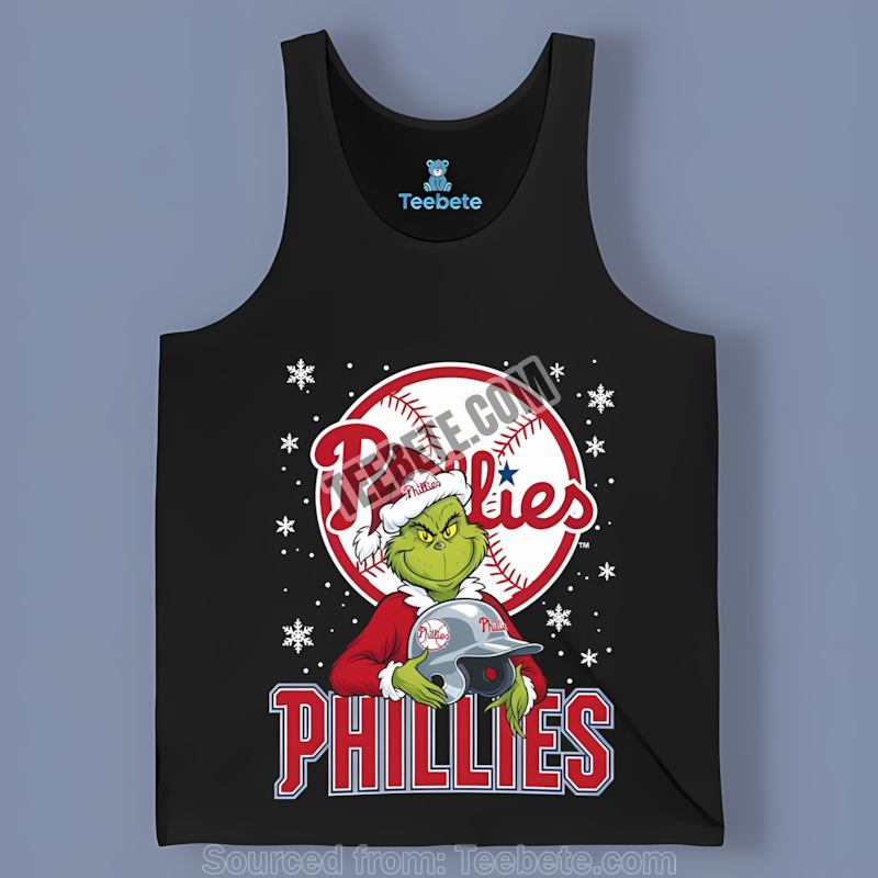 Show your unwavering Philadelphia Phillies fandom this holiday season with the Grinch Holding Helmet Philadelphia Phillies Graphic Shirt from Teebete. Inspired by the classic Dr. Seuss tale and the enduring spirit of baseball, this design captures the playful tension between the holiday spirit and the passionate loyalty of Phillies fans. Imagine a grumpy Grinch, unexpectedly charmed by the beauty of a Phillies helmet, a symbol of unwavering devotion and shared victories throughout the years. This design perfectly encapsulates that heartwarming yet slightly mischievous feeling.
