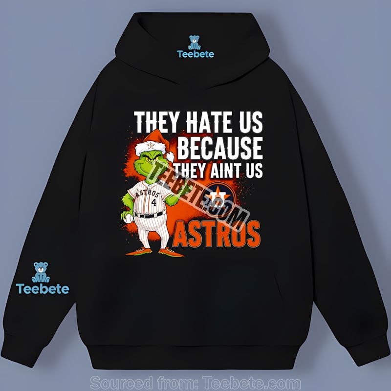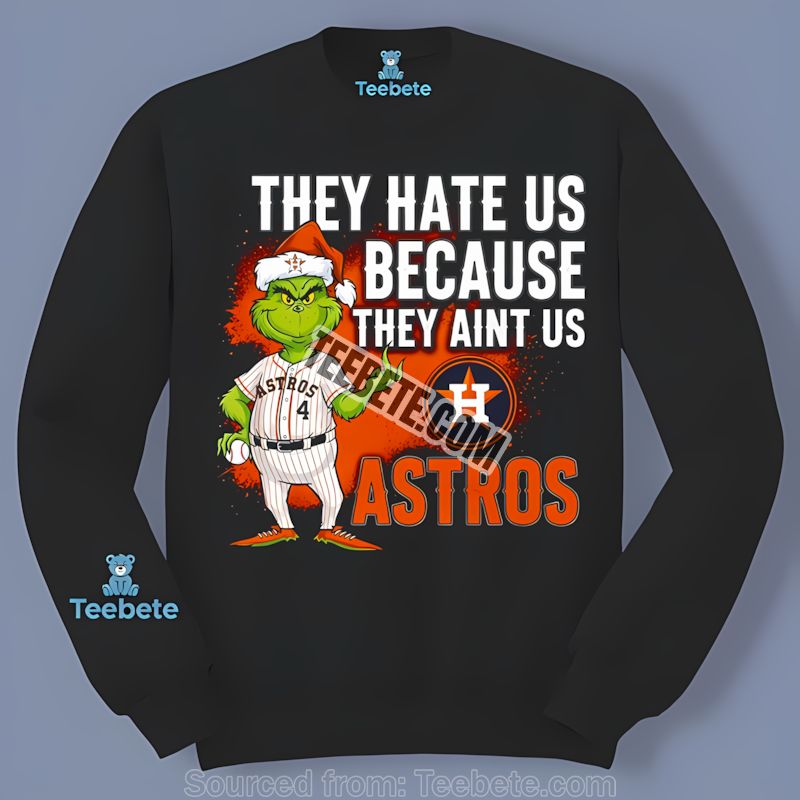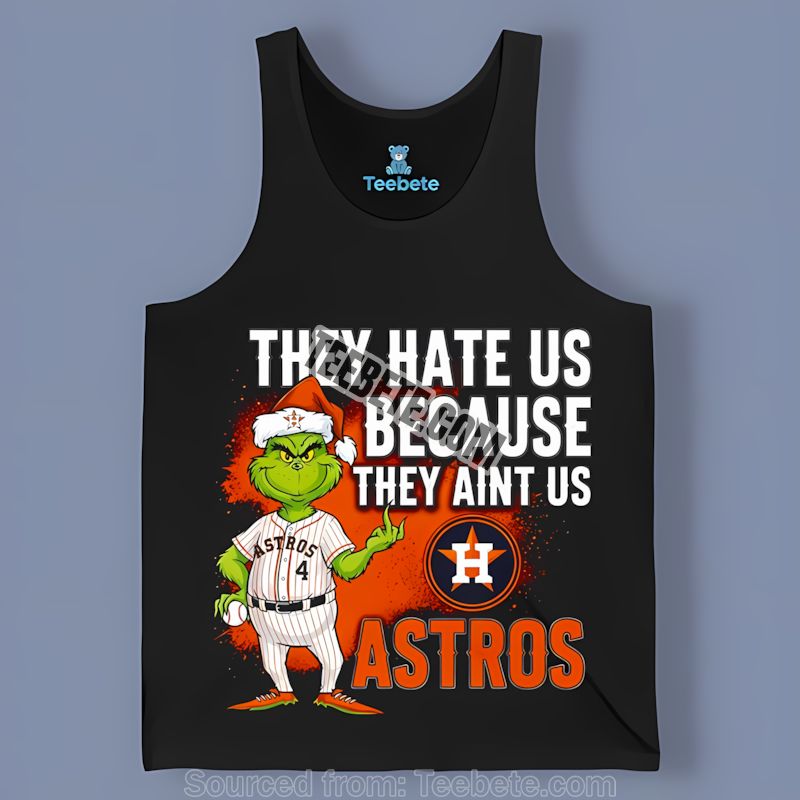 Don’t miss out on this must-have piece of Astros fan apparel! Show your team spirit and order your Grinch Houston Astros They Hate Us Because They Aint Us Shirt from Teebete today!