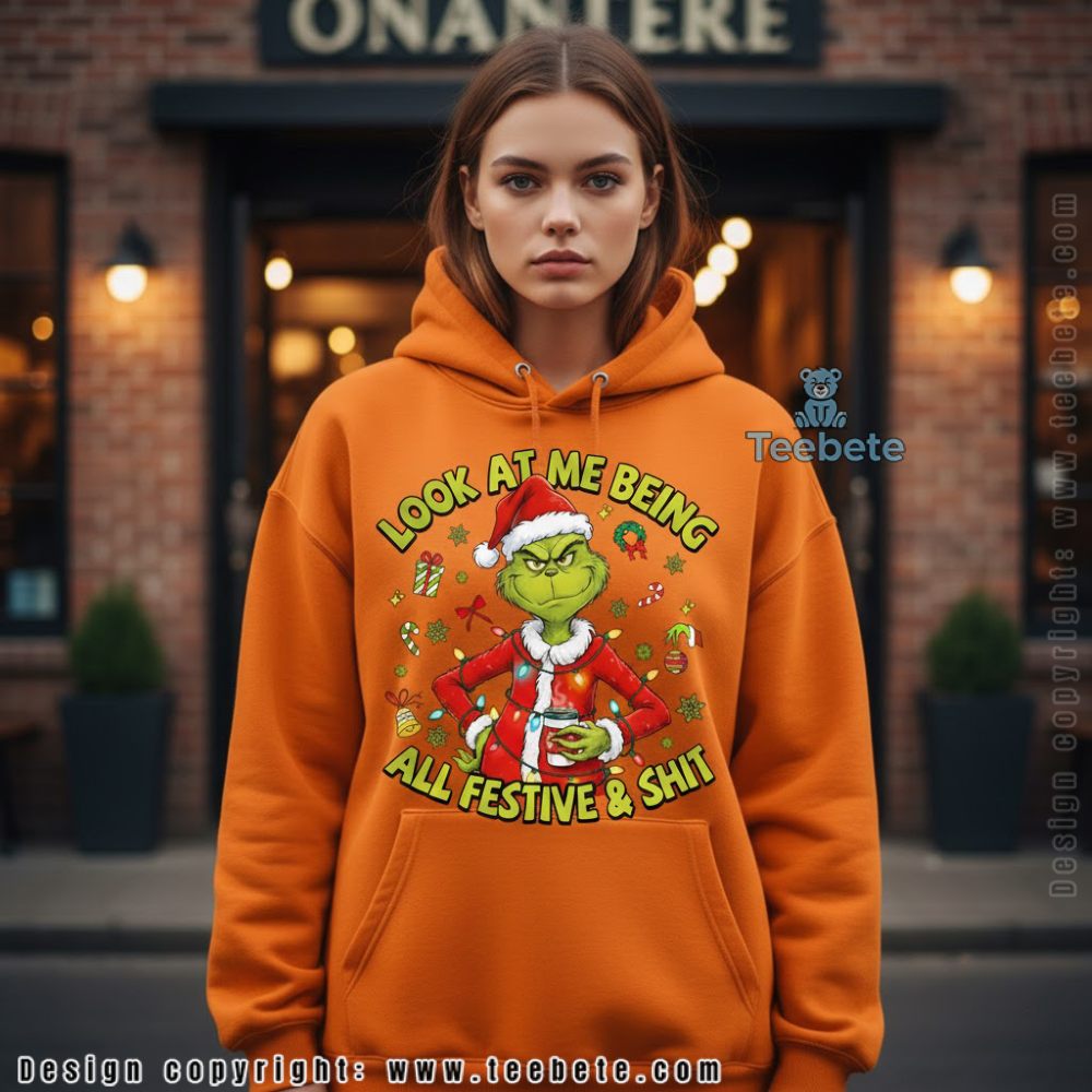 Don’t miss out on adding this Grinch Look At Me Being All Festive Shirt to your wardrobe. This must-have apparel is not just a shirt; it’s a way to share your love for the holidays with others. Grab yours today and make every celebration a little more fun!