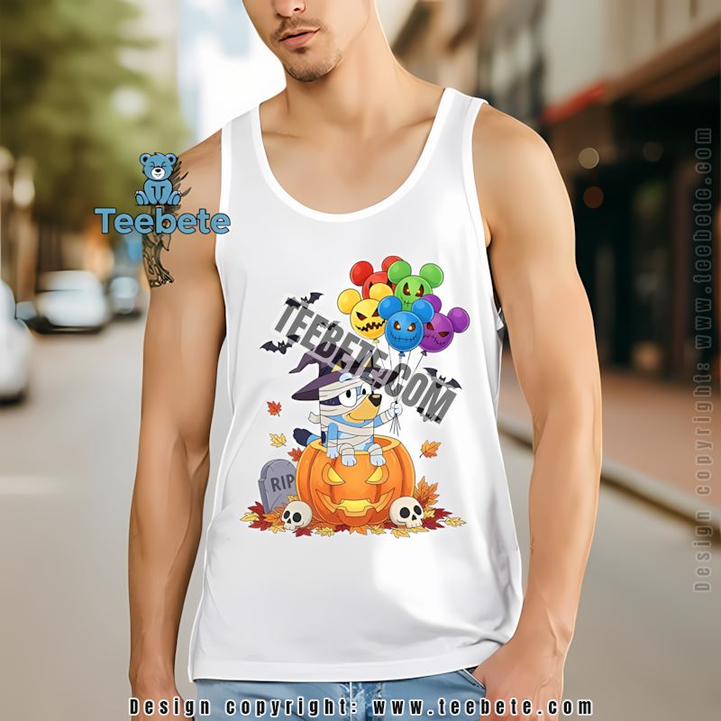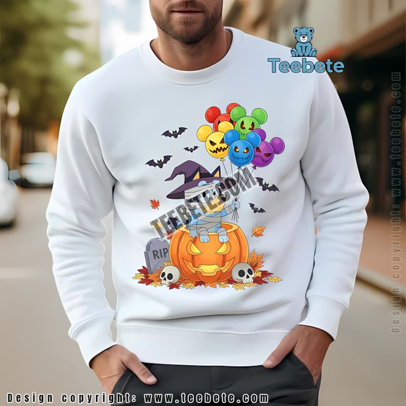 Get ready to celebrate the spookiest time of the year with our Halloween Bluey Mickey Balloons Pumpkin Spooky Shirt! Inspired by the playful spirit of childhood and beloved characters, this shirt captures the essence of fun during Halloween. Imagine a festive night filled with laughter, trick-or-treating, and the joyful wonder of little ones in costumes. Whether you’re a fan of classic cartoons or just love the whimsical vibe, this design has something for everyone.