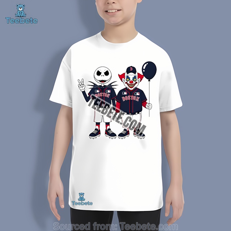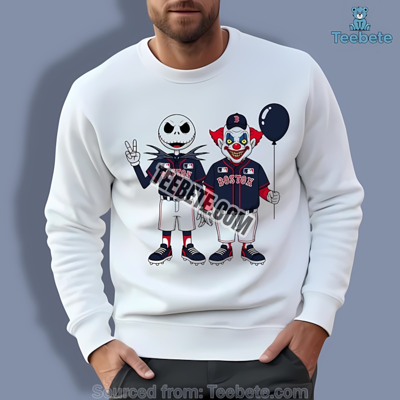 Unleash your inner ghoul with this unique Teebete design! This Halloween Boston Red Sox Jack Skellington And Pennywise Cotton Shirt is more than just apparel; it’s a wearable celebration of fandom, horror, and baseball.