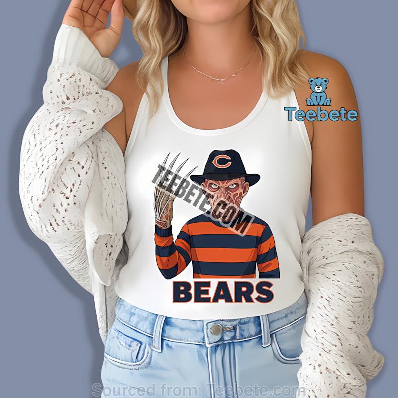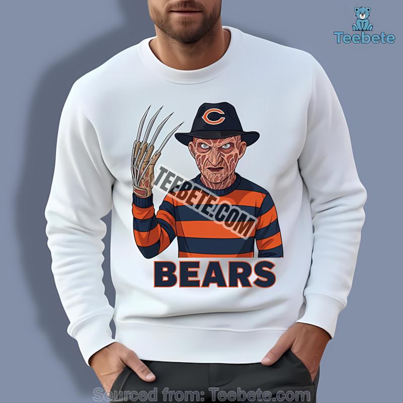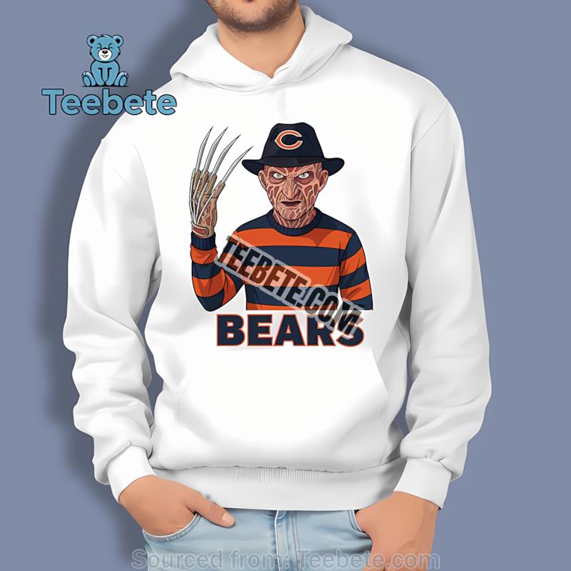 Don’t miss out on this must-have addition to your wardrobe. Stand out this Halloween with Halloween Chicago Bears fan gear that is as bold as your team spirit. Get your Halloween Chicago Bears Freddy Krueger Shirt from Teebete today and make your spooky season unforgettable!