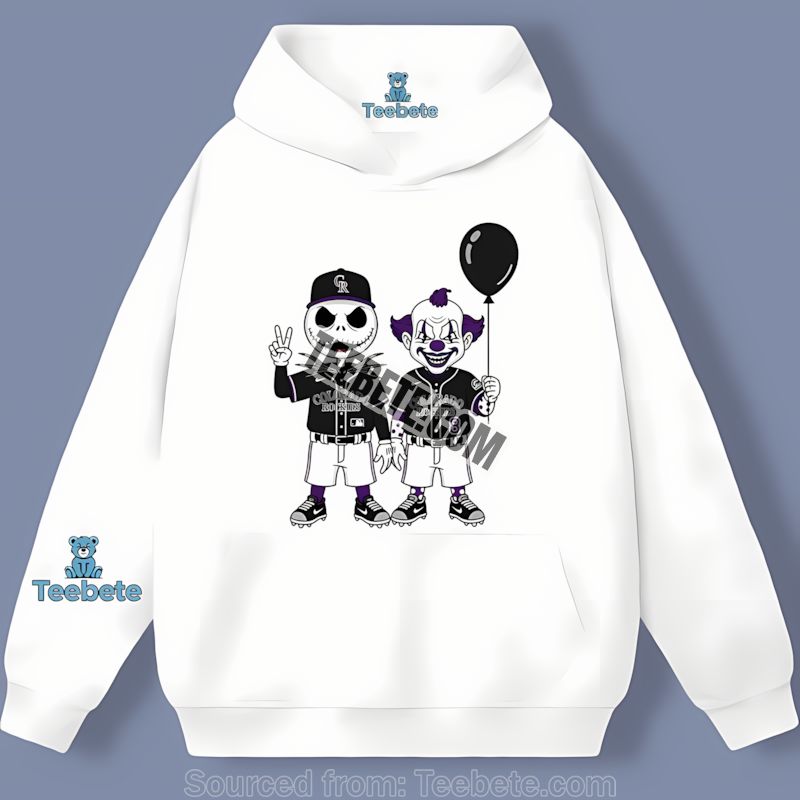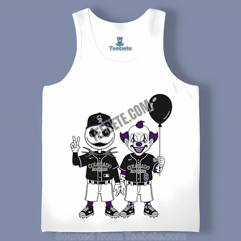 Unleash your inner ghoul this Halloween with the Halloween Colorado Rockies Jack Pennywise Shirt from Teebete. This unique design merges the chilling essence of Pennywise the Dancing Clown with the vibrant spirit of the Colorado Rockies, creating a truly unforgettable piece of Colorado Rockies logo statement shirt apparel. The inspiration behind this design comes from the thrilling juxtaposition of childhood nostalgia (remember those scary-fun Halloween nights?) and the unwavering loyalty of Rockies fans.