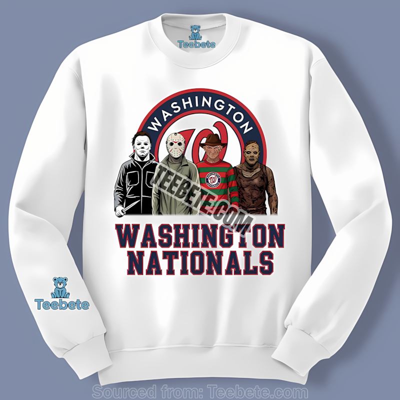 Crafted by Teebete, this Washington Nationals Halloween shirt is perfect for fans who enjoy blending sports culture with spooky vibes. Picture yourself walking into a gathering, instantly garnering compliments for your unique style. The design features iconic horror motifs intertwined with the bold colors and logo of the Nationals, creating a striking visual that resonates with both baseball enthusiasts and horror aficionados alike.
