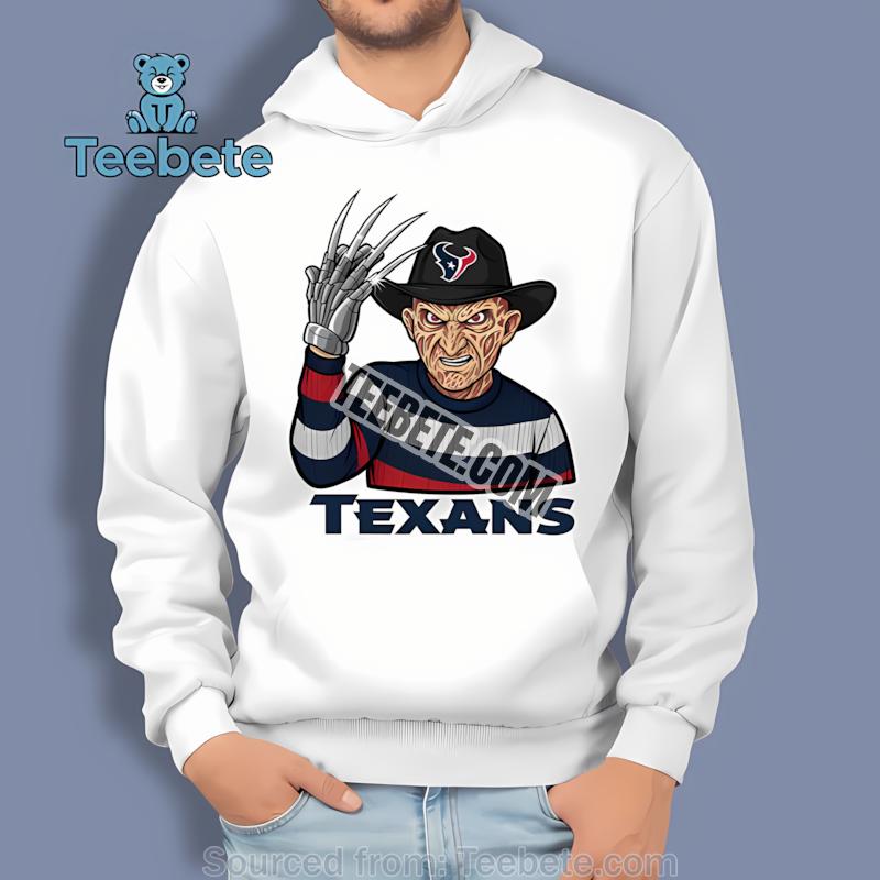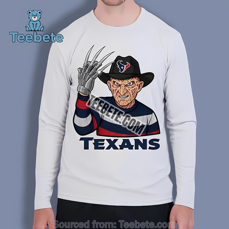 Comfort is king, and the Freddy Krueger Houston Texans shirt delivers so you can enjoy the festivities all night long. Crafted from soft, breathable fabric, this shirt offers a relaxed fit ideal for layering or wearing on its own. Whether you’re cheering on your team from the stands, throwing a Halloween party, or just hanging out with friends, this shirt ensures ease and style. Its creative design adds a visual appeal that is sure to turn heads, making it the perfect addition to your collection.
