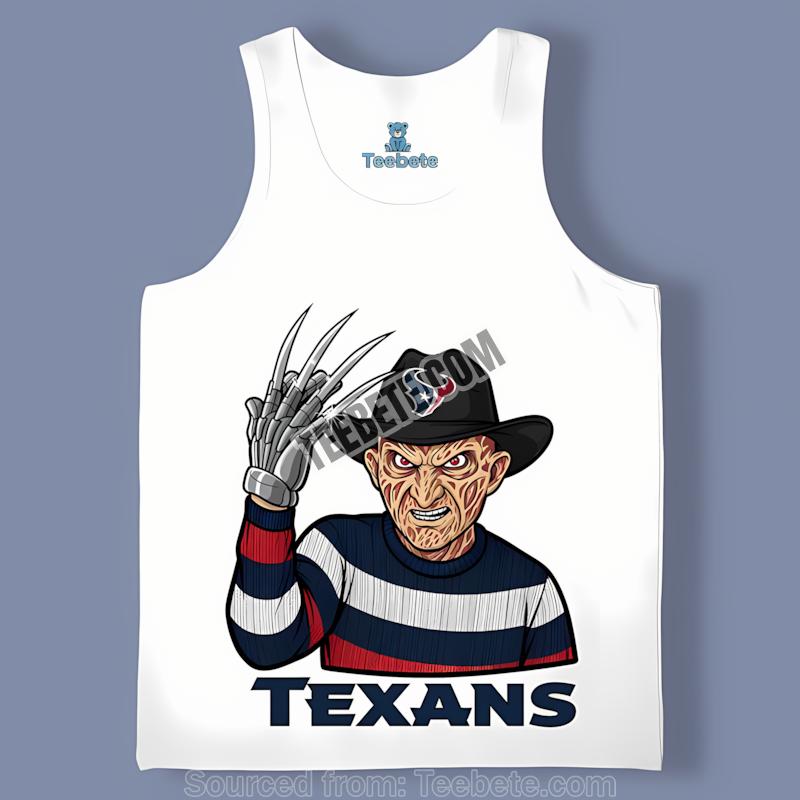 Don’t miss out on the chance to showcase your unique style this Halloween. Embrace the spirit of the season with the Texans Freddy Krueger costume top and be the trendiest fan at any gathering. Add this gem to your cart today and gear up for a Halloween celebration like no other, brought to you by Teebete!