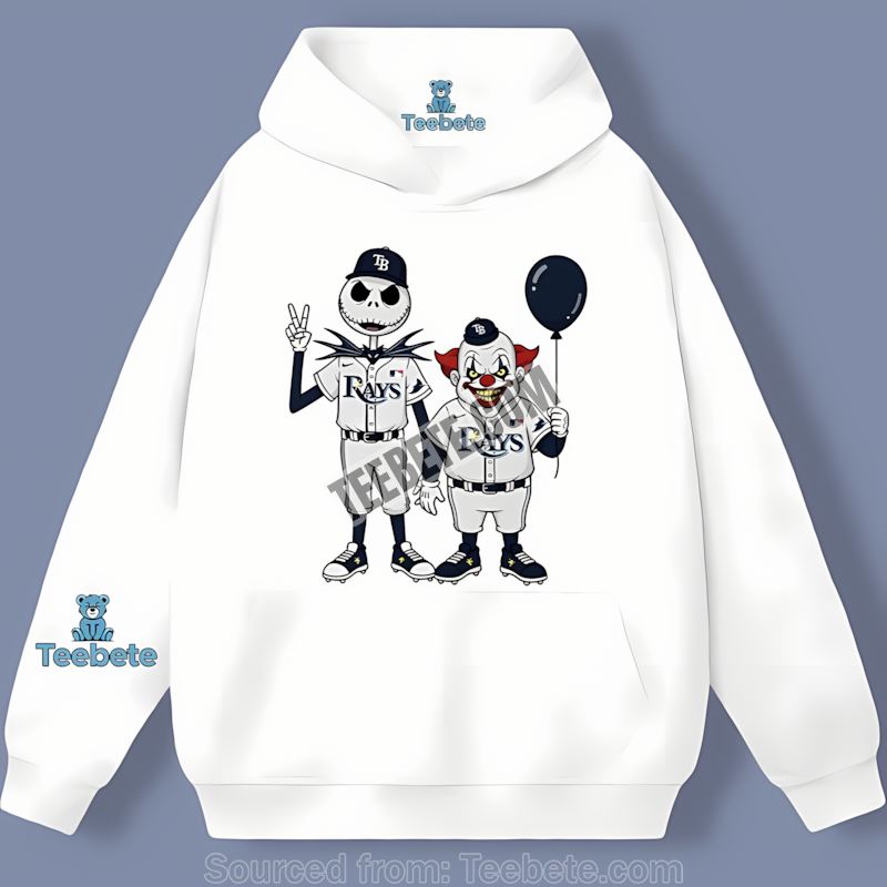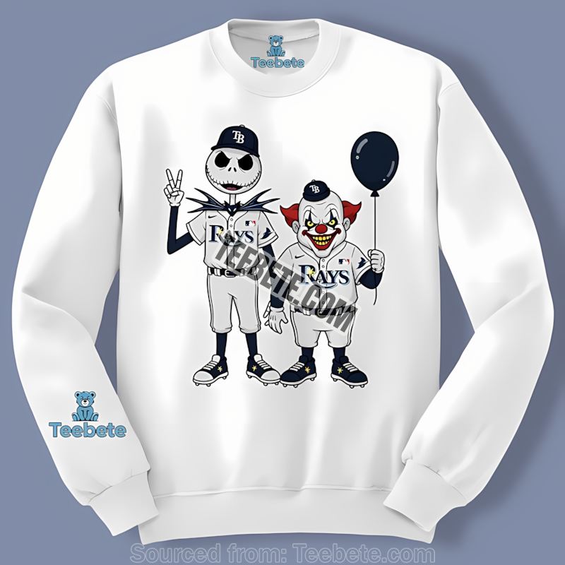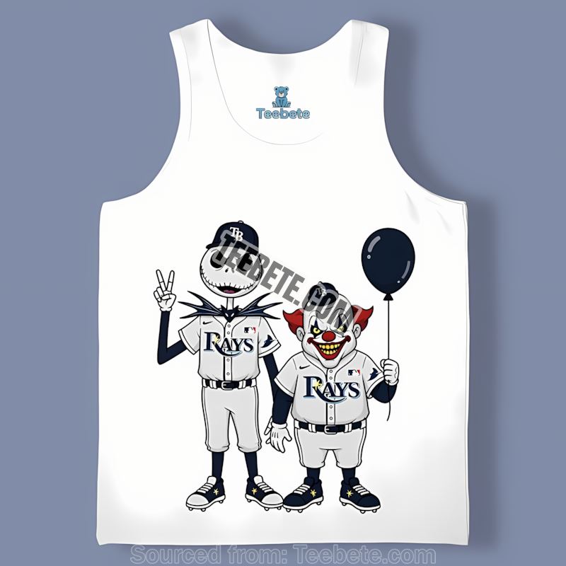 Embrace the spooky spirit of Halloween with this unique Teebete Halloween Jack And Pennywise In Tampa Bay Rays Retro Shirt. Inspired by the chilling worlds of Tim Burton and Stephen King, this design blends the playful retro aesthetic of the Tampa Bay Rays with the iconic imagery of Jack Skellington and Pennywise the Dancing Clown. It’s a testament to the power of unexpected pairings and celebrates the thrill of embracing both spooky fun and baseball fandom. The design concept sprung from a late-night brainstorming session, fueled by pumpkin spice lattes and a marathon of classic horror films. We wanted to create something that would resonate with those who appreciate both the quirky charm of Halloween and the nostalgic feel of vintage sports apparel.