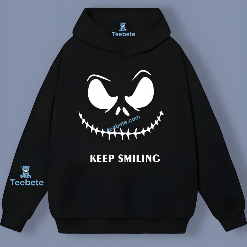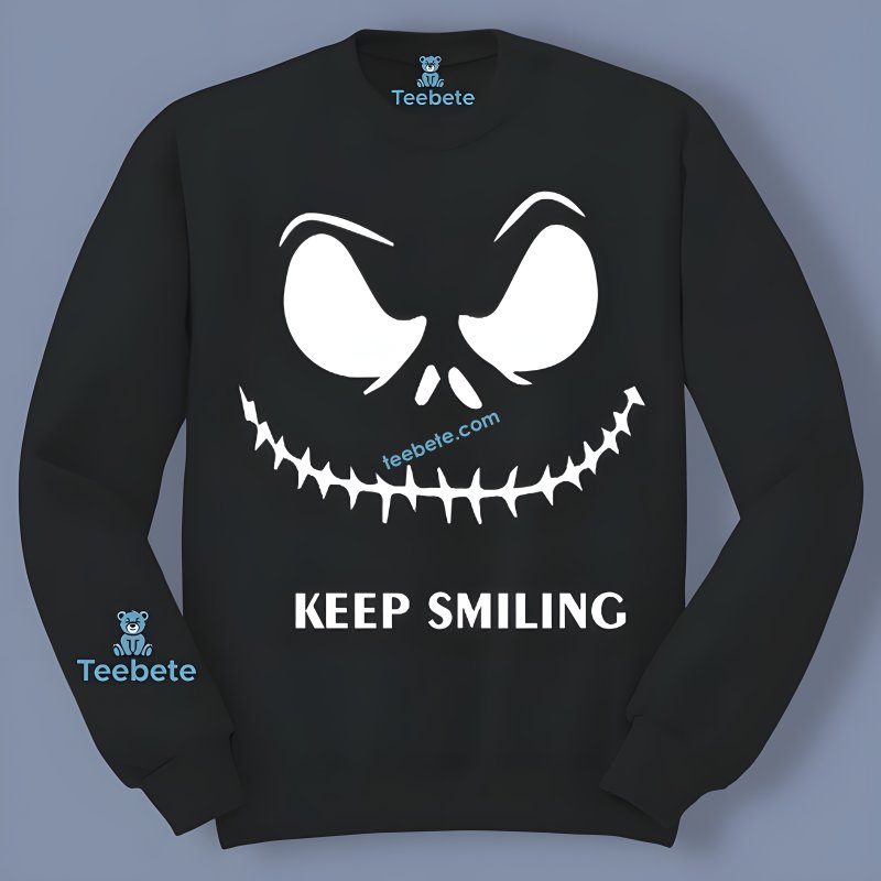 In terms of technical details, this Halloween Jack Skellington Face Keep Smiling Boy Shirt is machine washable, ensuring easy care and maintenance. The relaxed fit allows for freedom of movement, lending itself well to any activity, whether it’s a costume party or a cozy movie night.
