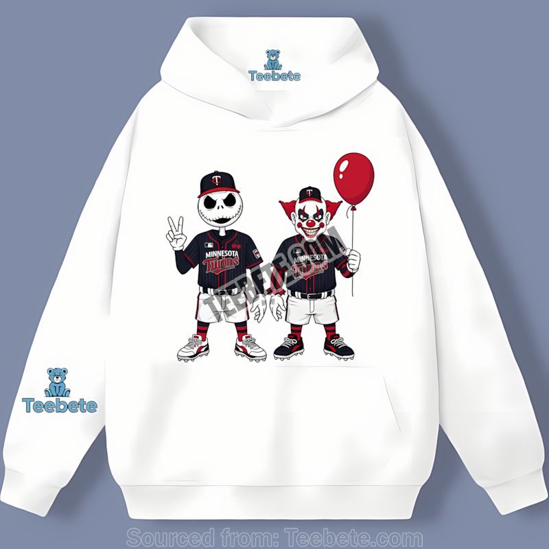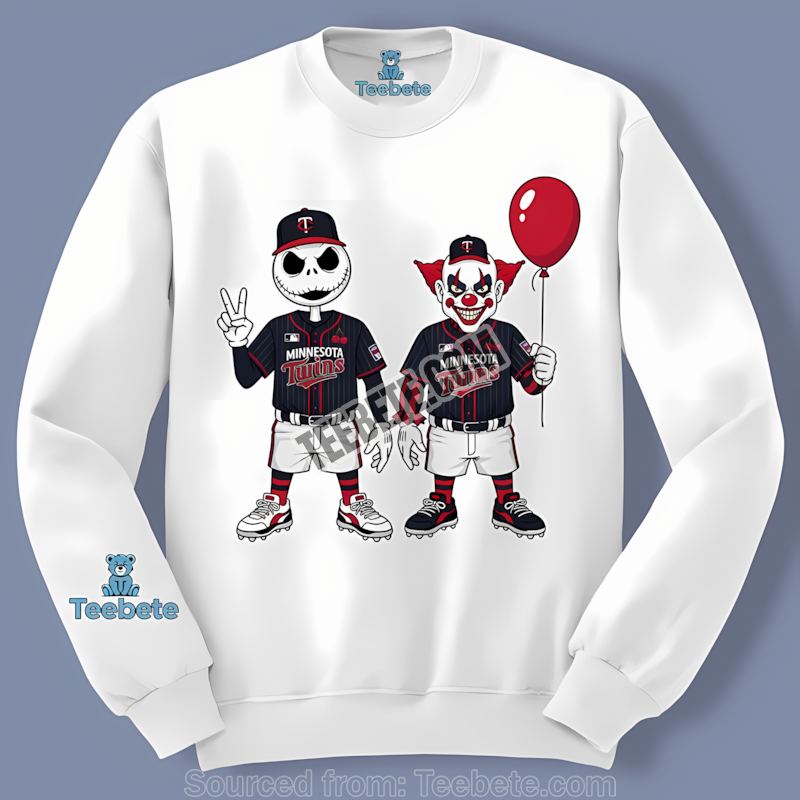 Unleash your inner ghoul this Halloween with the Halloween Minnesota Twins Jack Skellington Pennywise Shirt, a Teebete design born from the spooky fusion of baseball fandom and beloved horror icons. We combined the iconic Minnesota Twins logo with the chilling charm of Jack Skellington and Pennywise, creating a shirt that’s as unique as it is terrifyingly fun. This design was inspired by the thrill of Halloween, the love for the Twins, and the enduring power of classic horror characters.