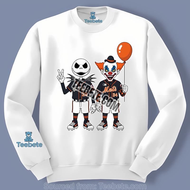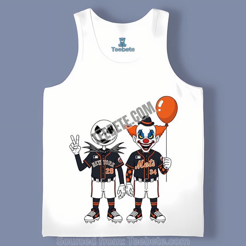 Unleash your inner ghoul this Halloween with our Halloween Night New York Mets Jack Skellington And Pennywise Cotton Shirt! This unique Teebete design perfectly blends the spooky spirit of Halloween with the spirited energy of your favorite baseball team, the New York Mets. It’s more than just a shirt; it’s a statement piece reflecting a love for both classic horror and America’s pastime. The idea for this design actually came from a late-night brainstorming session between our design team – one a die-hard Mets fan, another obsessed with Tim Burton films, and the third a horror movie aficionado. The result? This unforgettable mashup that perfectly captures the spirit of the season.