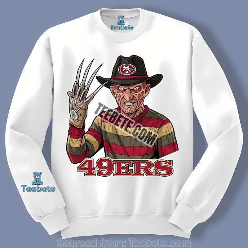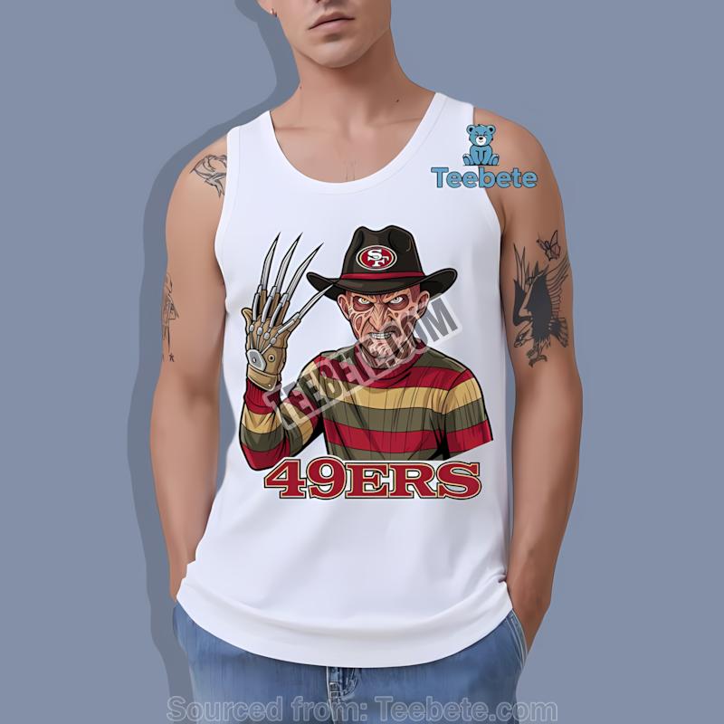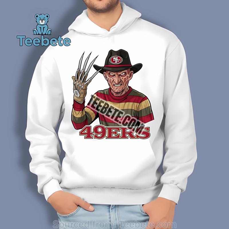 Let your love for the 49ers shine in a frightfully fun way with this one-of-a-kind shirt. Join the ranks of dedicated fans who celebrate every occasion with style, and don’t miss out on this exclusive offering. Get your Freddy Krueger themed 49ers merchandise from Teebete today, and make this Halloween a memorable celebration of team pride and spooky fun!