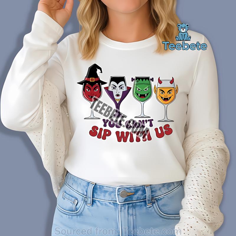 Offering a balance of style and practicality, the Halloween Villain Wine Glasses You Can’t Sip With Us Shirt serves not just as an outfit, but as a statement piece for your wardrobe. Embrace the fun of Halloween while showcasing your team spirit through unique and eye-catching apparel. Add this shirt to your collection, and you’ll be the star of any gathering.