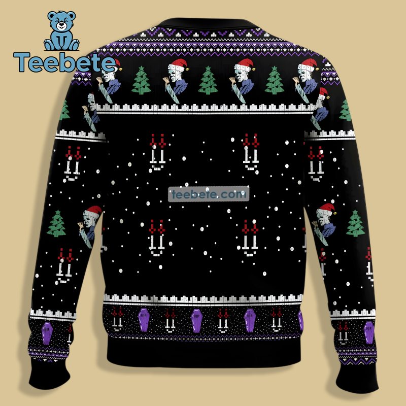 The cultural significance behind this design comes from its roots in the beloved Halloween franchise. Michael Myers has become an iconic figure, especially among horror fans. Tapping into this nostalgia, Teebete created a piece that not only celebrates the iconic villain but also brings a playful twist to traditional holiday attire with the playful ugly sweater theme.