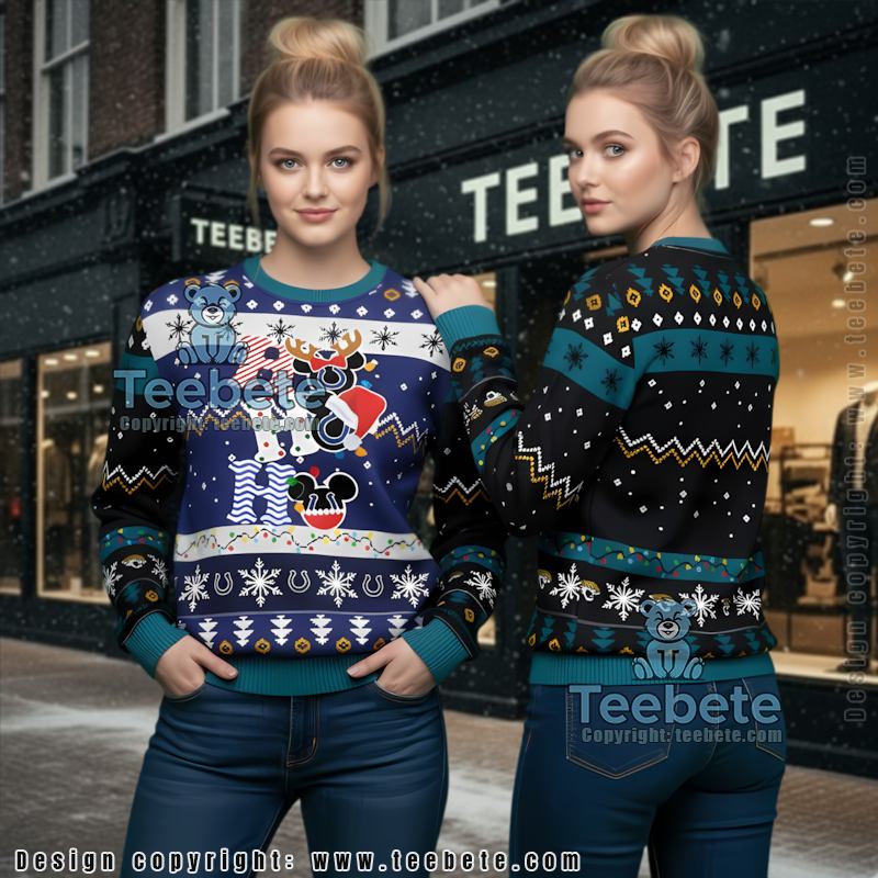 Show your spirit this holiday season with the Jacksonville Jaguars Ho Ho Ho Mickey Mouse Ugly Xmas Sweater Purple Party. Designed to spread festive cheer, this one-of-a-kind sweater combines football fandom with a playful twist that anyone can appreciate. Embrace the holiday festivities while showcasing your love for the team with this unique festive wear.