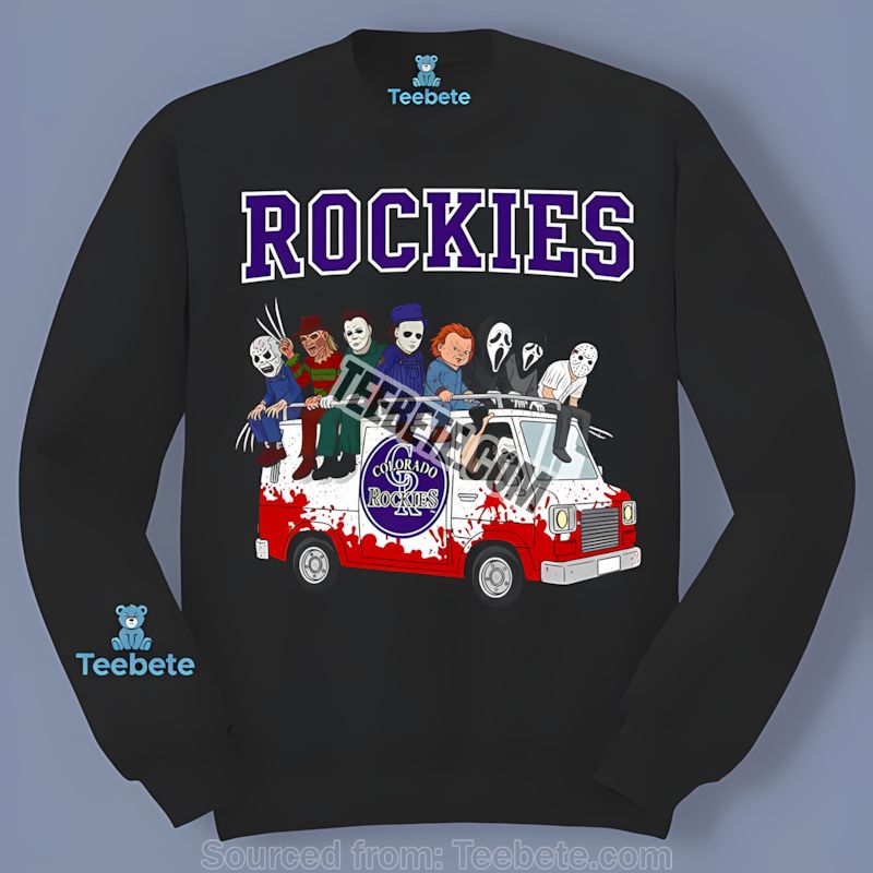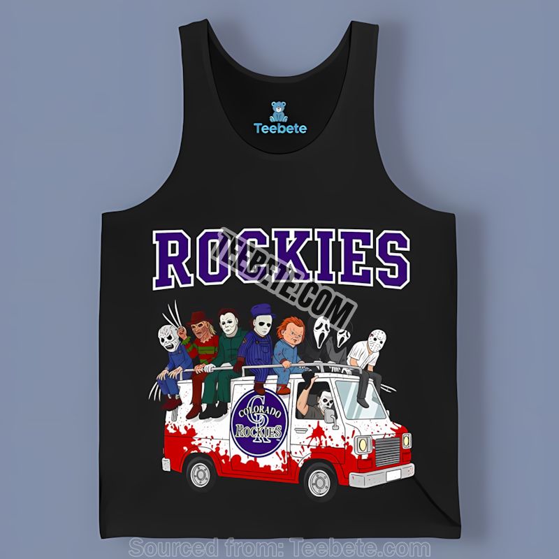 This playful yet sophisticated design is more than just a shirt; it’s a conversation starter, a symbol of your unique personality and fandom. Join the league of spirited fans; grab your own Horror Colorado Rockies Vs Halloween Bus Shirt from Teebete today! Don’t miss out on this limited-edition design – order your Teebete Horror Colorado Rockies Vs Halloween Bus Shirt now!