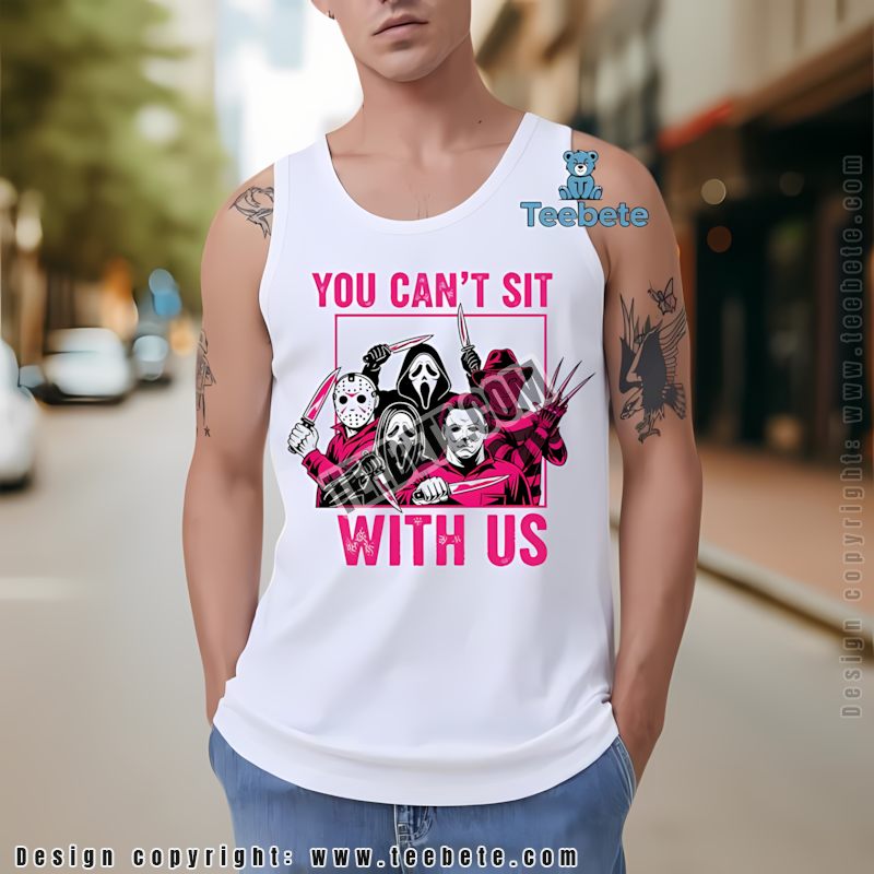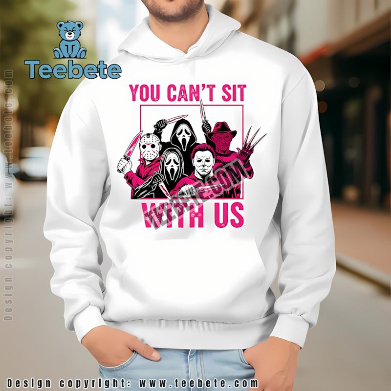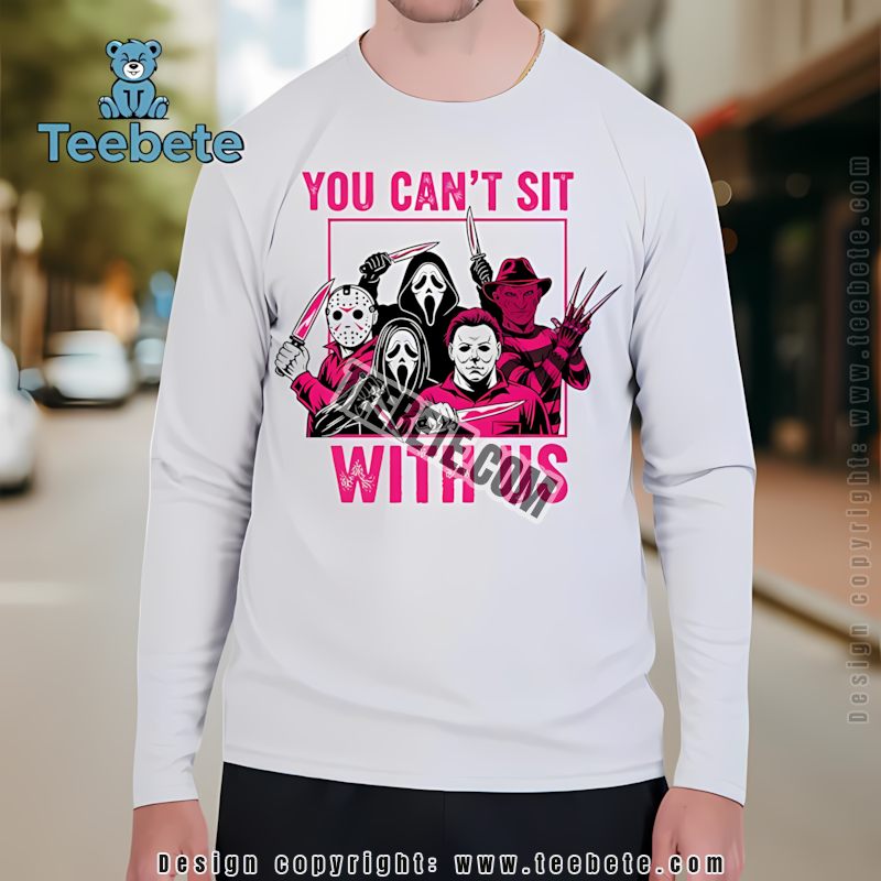 In a world where fandoms collide, this design emerges as a vibrant tribute to the spirit of iconic horror cinema, striking a chord with enthusiasts and casual followers alike. The Horror Icons You Can’t Sit With Us Pink Halloween Graphic Shirt encapsulates that thrilling moment when fans unite over their shared love for terrifying classics. It tells a story of friendship, loyalty, and the bonding that horror brings, making it more than just a shirt—it’s an emblem of community and passion that resonates deeply during the Halloween season.
