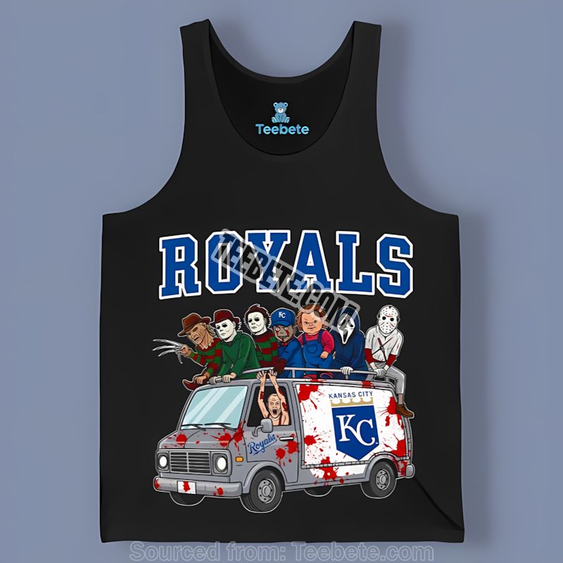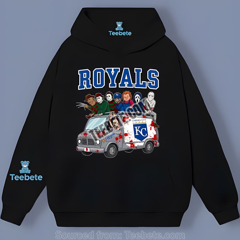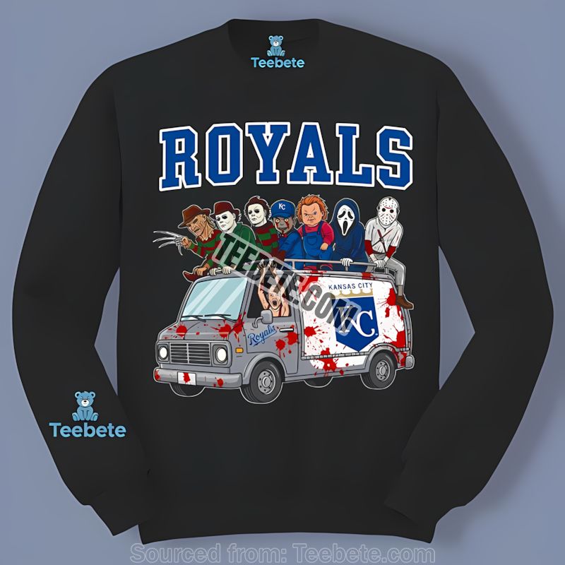Own a piece of this thrilling crossover! Celebrate your love for the Royals and the spooky season with this unforgettable Teebete design. Grab your Horror Kansas City Royals Vs Halloween Characters On Bus Shirt today!