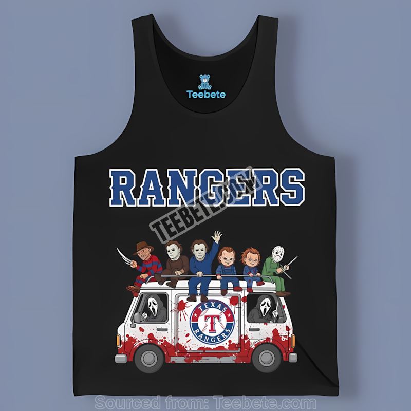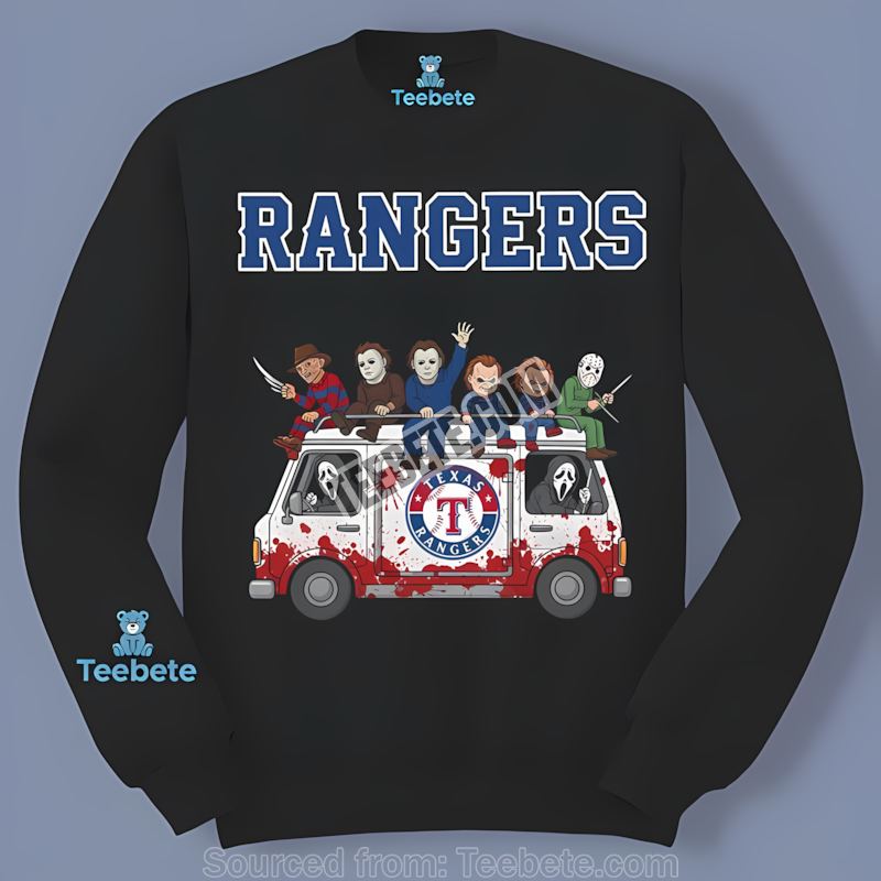 Our state-of-the-art print quality captures the vivid imagery of Texas Rangers vs horror characters without fading or cracking. Each detail is meticulously printed to ensure the colors pop and the design is striking, allowing you to express your dual love for sports and spooky stories. This Texas Rangers cotton bus shirt is not only a fashion statement but also a conversation starter among fellow fans and Halloween enthusiasts alike.