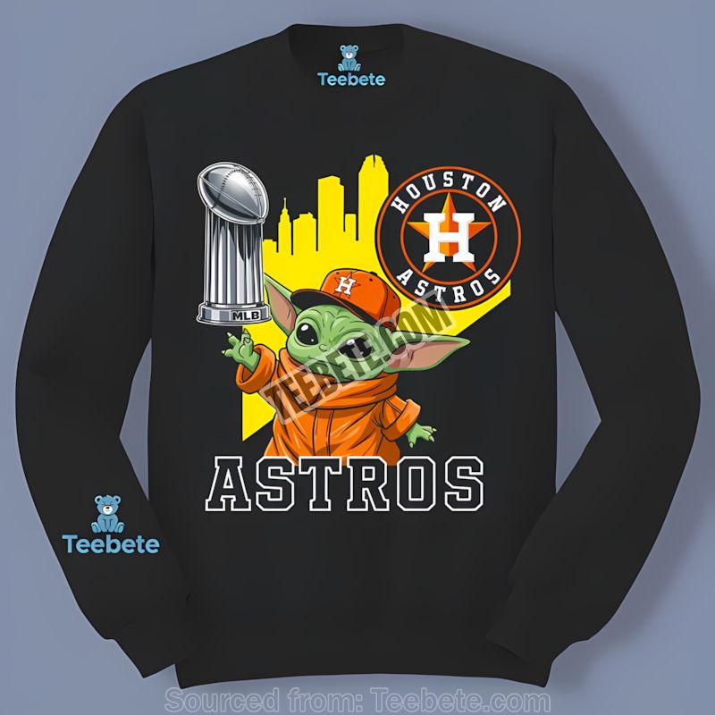 Don’t miss out on this fantastic opportunity to own a piece of Astros history with a galactic twist. Order your Houston Astros Baby Yoda Holding World Series Trophy Shirt from Teebete today and show your fandom in style!