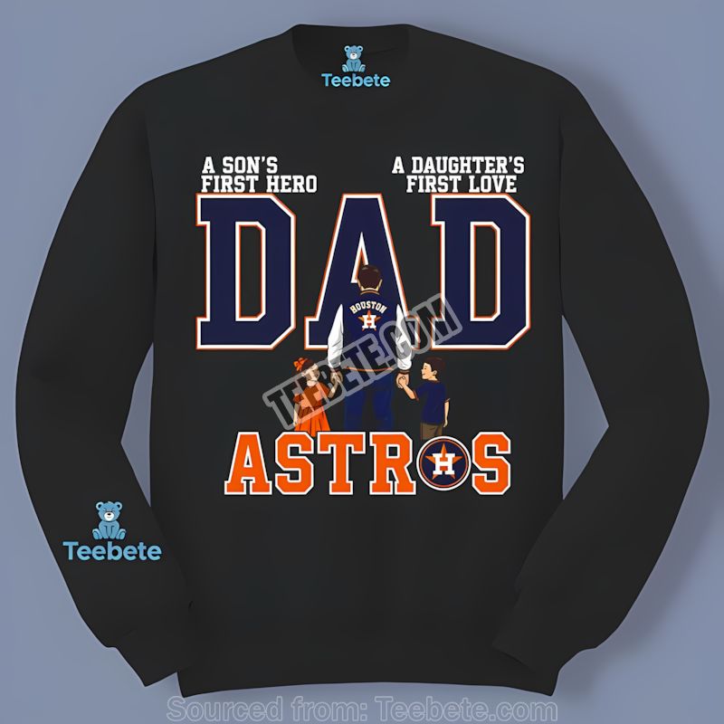 Ready to show your Astros pride and celebrate your fatherhood? Order your Houston Astros Dad A Sons Hero Daughters Love Shirt from Teebete today and make a statement!