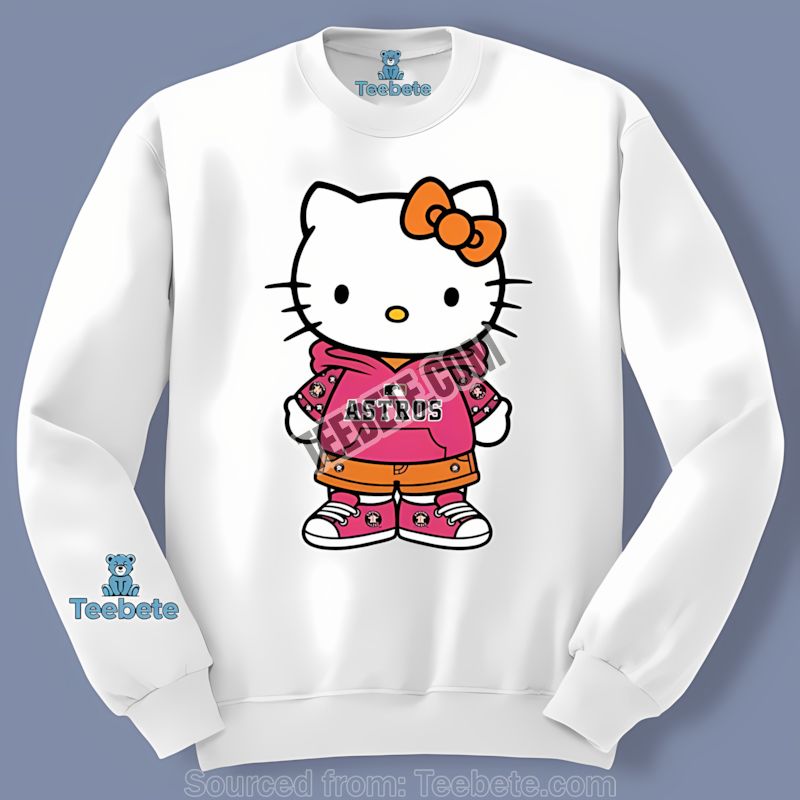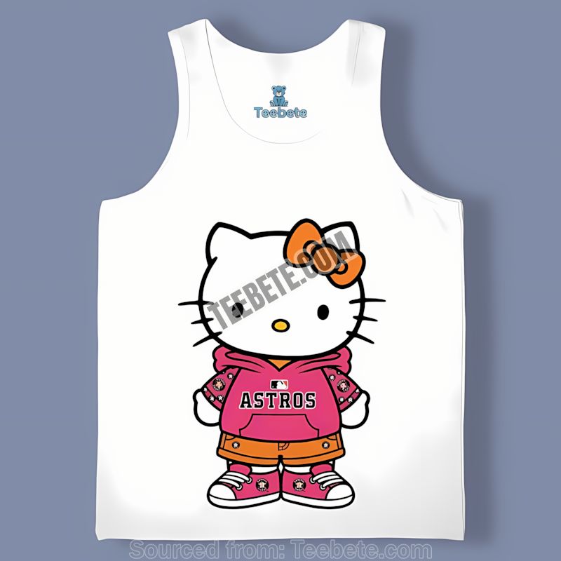 Ready to add this one-of-a-kind design to your wardrobe? Click here to order your own Teebete Houston Astros Hello Kitty Baseball Fan Shirt today and show your love for the game in style!
