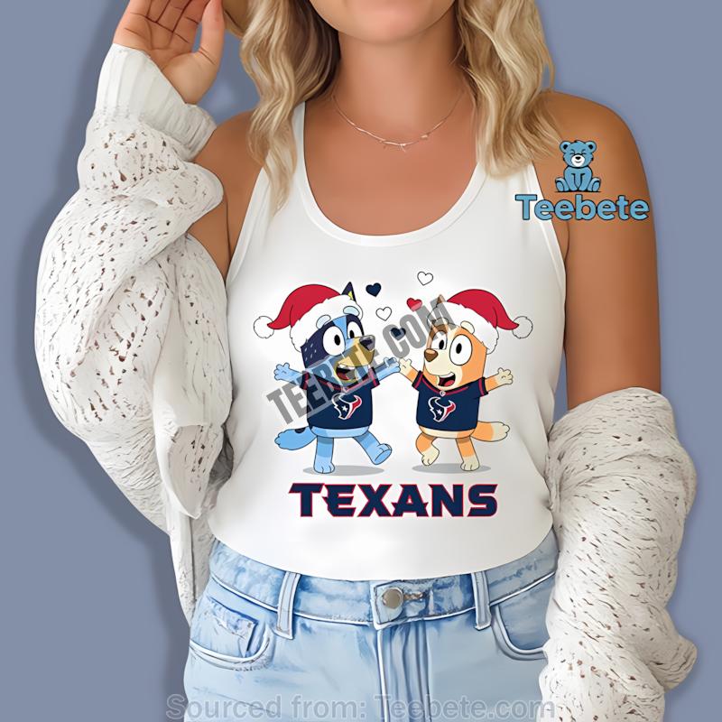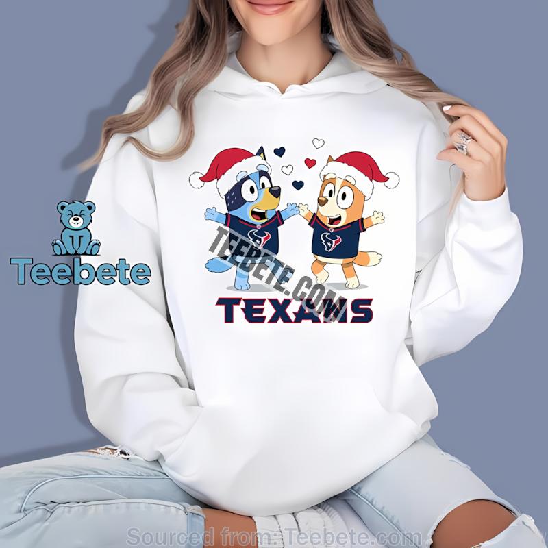 Don’t miss out on this opportunity to embrace the festivities! Order your Houston Texans Bluey And Bingo Dancing Christmas Shirt from Teebete today, and let your holiday spirit shine bright.