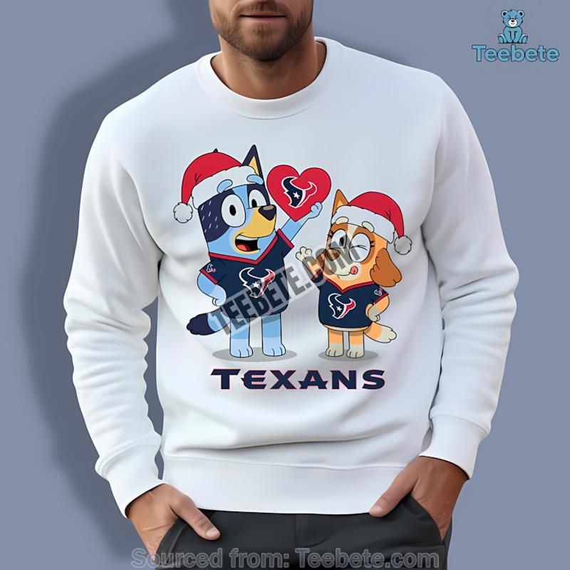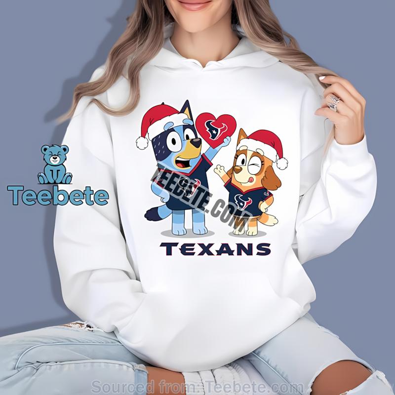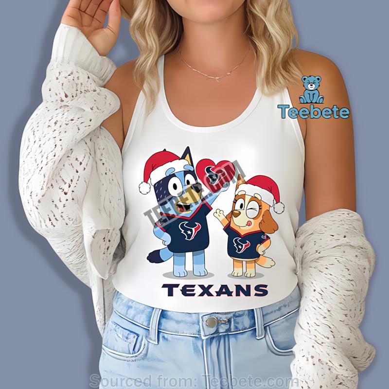 Don’t wait to show your Houston Texans pride and celebrate the season with a playful twist. Grab your Houston NFL themed tshirt now and delight in the holiday festivities in style. Order your Bluey Christmas outfit for Texans fans today with Teebete, and make this holiday season unforgettable!