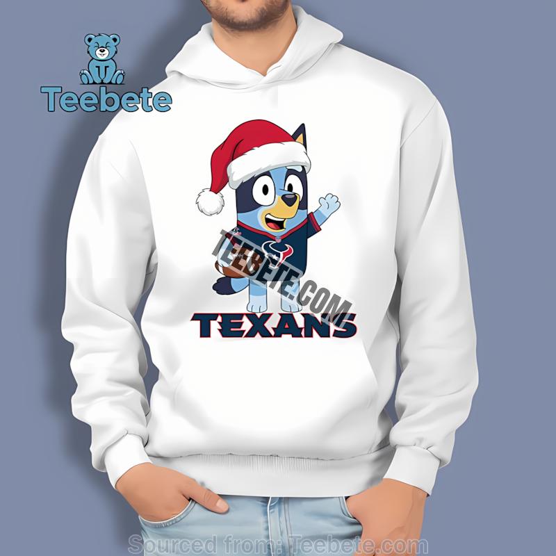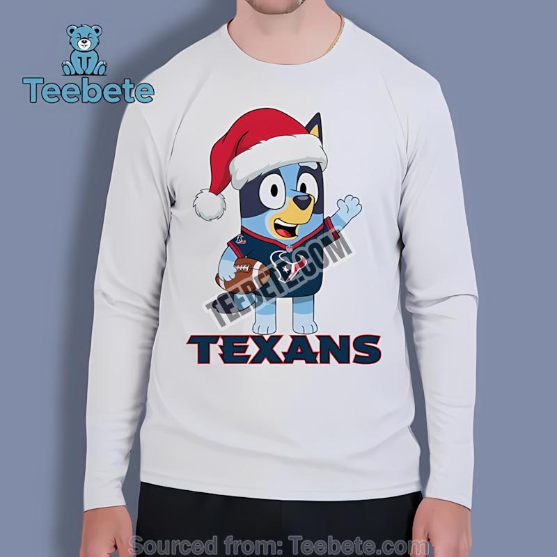 Join the ranks of dedicated fans who invest in quality and style with Teebete. Experience the magic of game day and the warmth of the holidays in a single piece. Don’t miss out—purchase your Houston Texans Bluey Christmas Santa Hat Shirt now and wear your pride with joy this season!