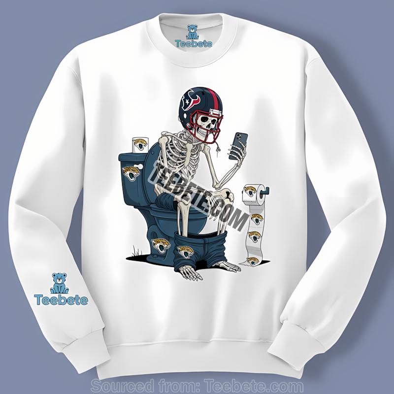 Don’t miss out on this exclusive piece from Teebete. Embrace the spirit of the game and stand out in the crowd. Order the Houston Texans Skeleton Toilet Vs Jaguars Rivalry Shirt today and wear your team pride with a twist that’s sure to spark joy and laughter!