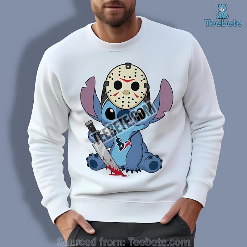Get your Houston Texans Stitch Jason Mask Halloween Shirt today and show off your unique blend of fandom and spookiness this Halloween!
