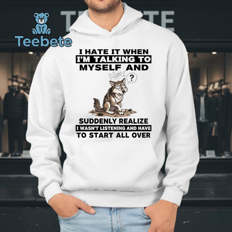 Proudly emblazoned across the front of this funny shirt is a clever design that captures the essence of humor and never takes itself too seriously. PERSONIFIED in the image is a cheeky wolf, adorned with expressive eyes and a playful grin, drawing you into a world where laughter reigns supreme. This I Hate It When I’m Talking To Myself And Wasn’t Listening Funny Wolf Shirt uses a dynamic color palette of earthy tones, perfectly contrasting with the bold graphic elements. The centered image highlights the whimsical nature of the artwork, ensuring it stands out in any casual setting.