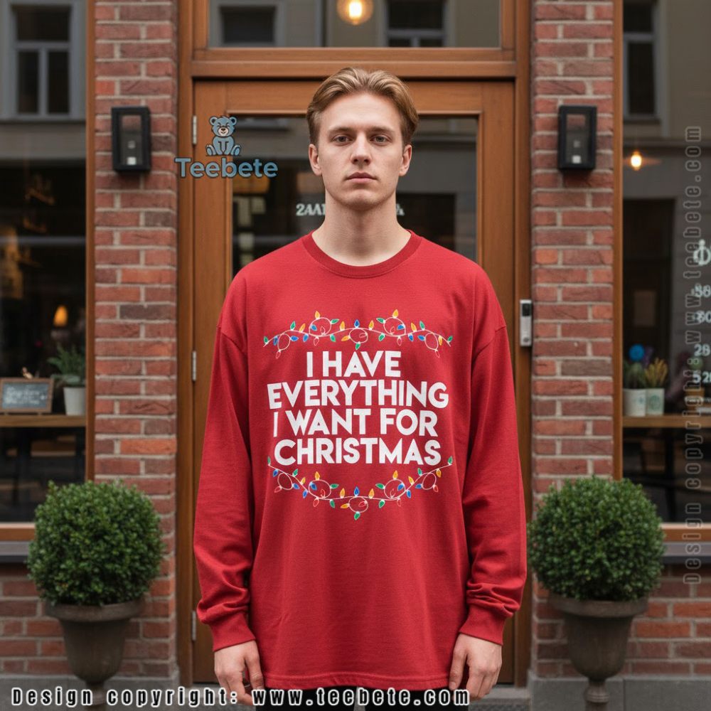 Don’t miss out on this must-have apparel for the festive season. Spread joy and warmth with the perfect gift for friends and loved ones who adore both comfort and style. Get your “I Have Everything I Want For Christmas Lights Shirt” today and make this holiday season one to remember!