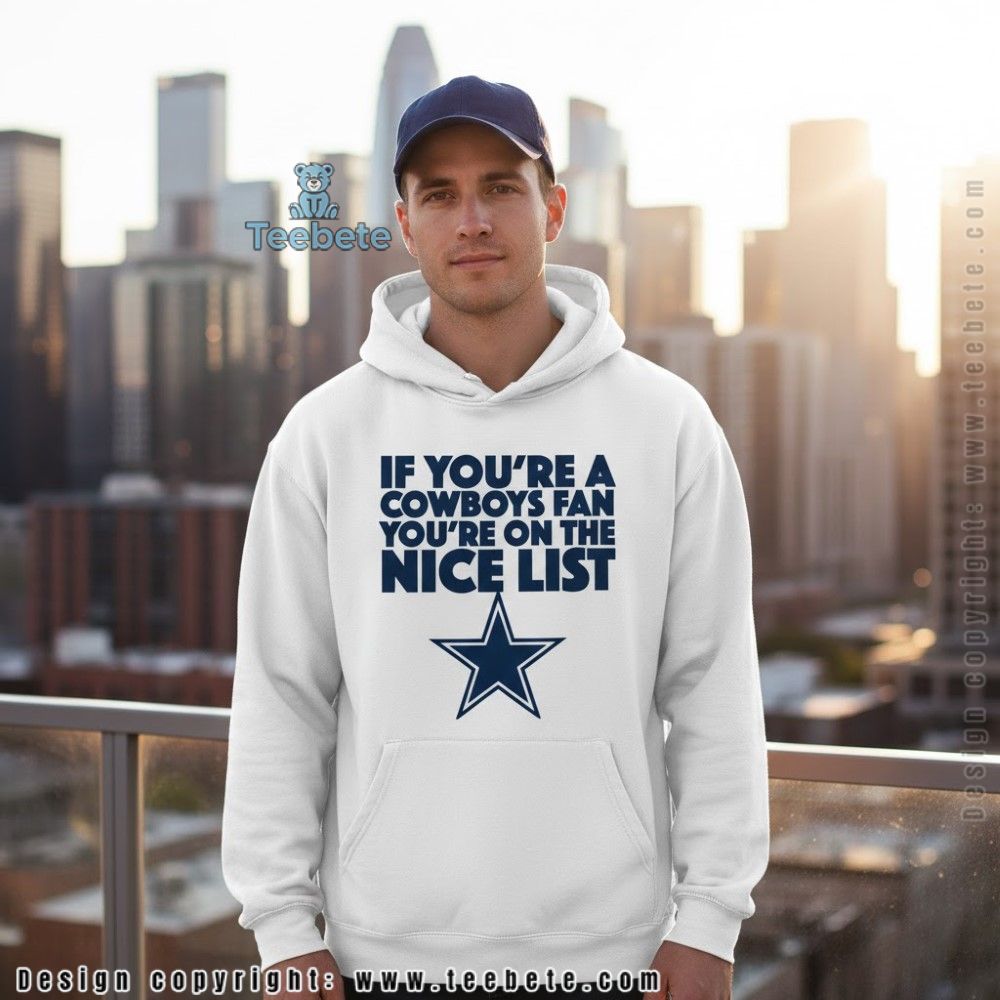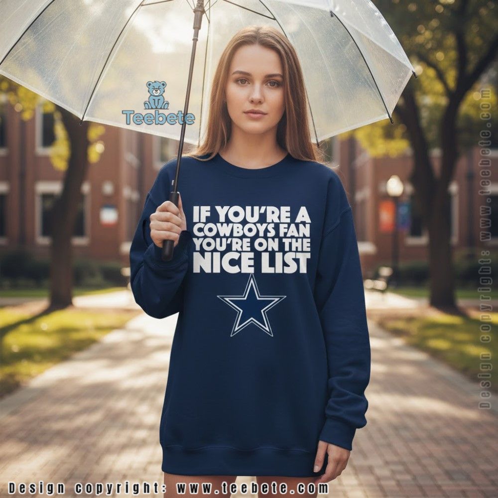 Show your true colors with the “If You Are A Cowboys Fan You Are On The Nice List Shirt.” This festive design embodies the spirit of being a devoted fan while celebrating the holiday season. Embrace your team pride and let everyone know where you stand—this shirt says it all!