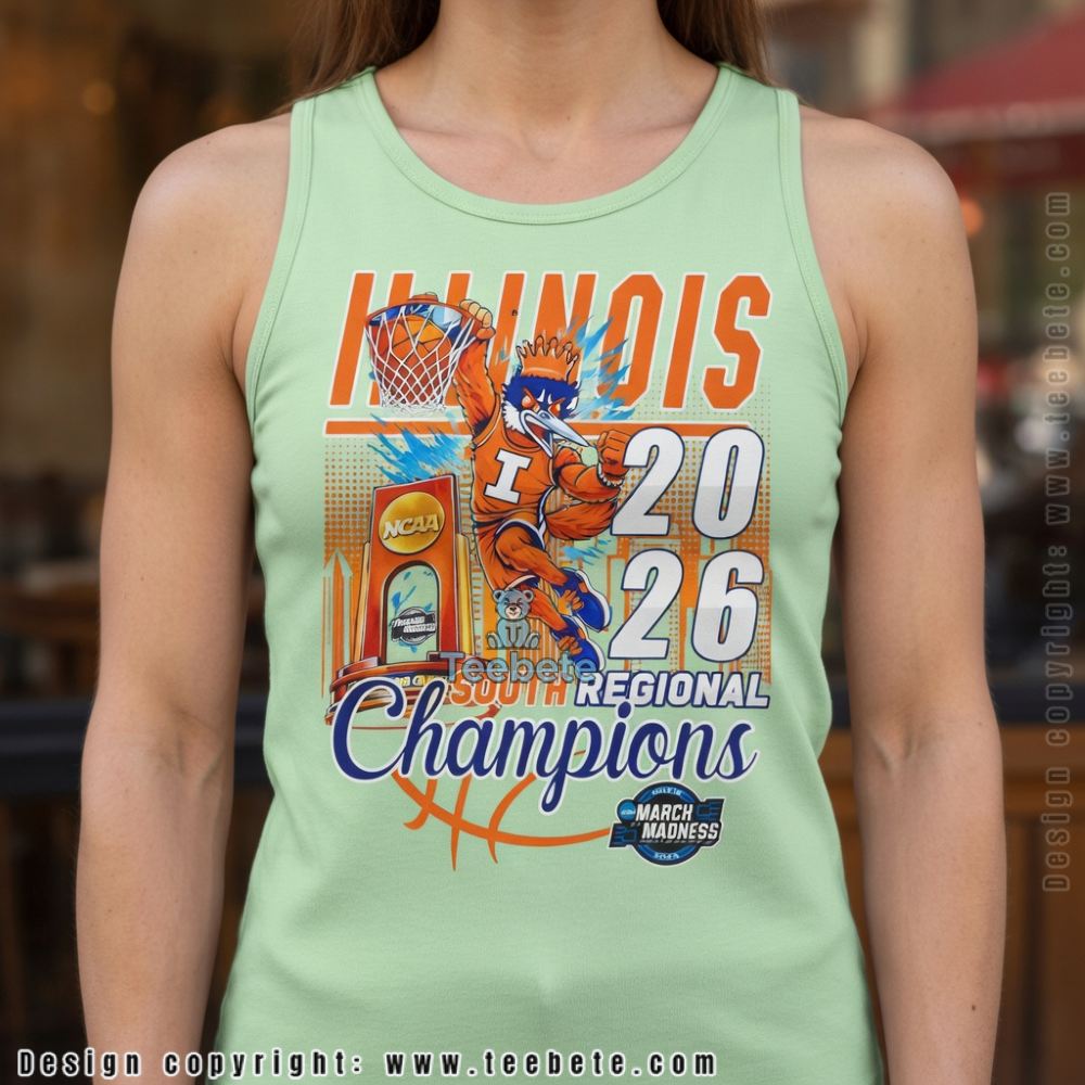 Inspired by the festive atmosphere of NCAA basketball events, this T-shirt encapsulates the spirit of March Madness celebrations. With a design that combines athletic excellence and team pride, it stands out in any casual setting, whether at a watch party or a game day gathering. The overall theme of spirited competition is enhanced by energetic design elements that capture the essence of the Illinois Fighting Illini. Showcasing the “2026 South Regional Champions Illinois Fighting Illini T-Shirt,” this piece is perfect for fans eager to celebrate their team’s accomplishments in style.