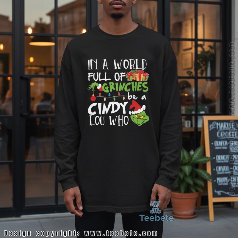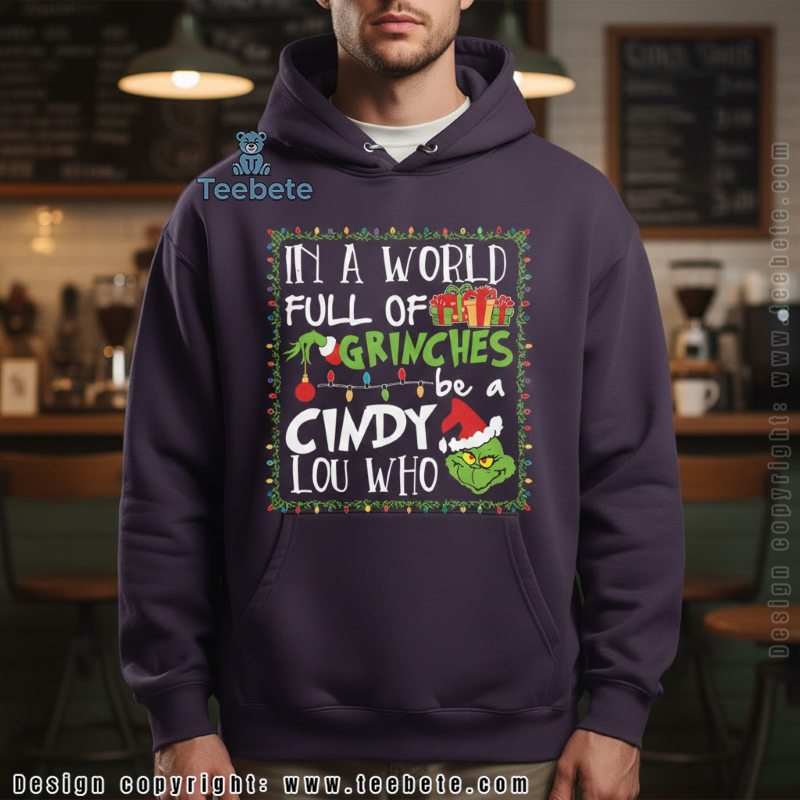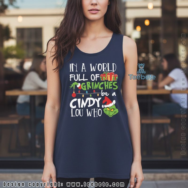 This In A World Full Of Grinches Be A Cindy Lou Who shirt is the perfect gift that embodies kindness and cheer for friends and family alike. Celebrate the season and make a statement with this unique piece of clothing. Embrace the spirit with our must-have shirt that encourages everyone to be a little more like Cindy Lou Who this Christmas.