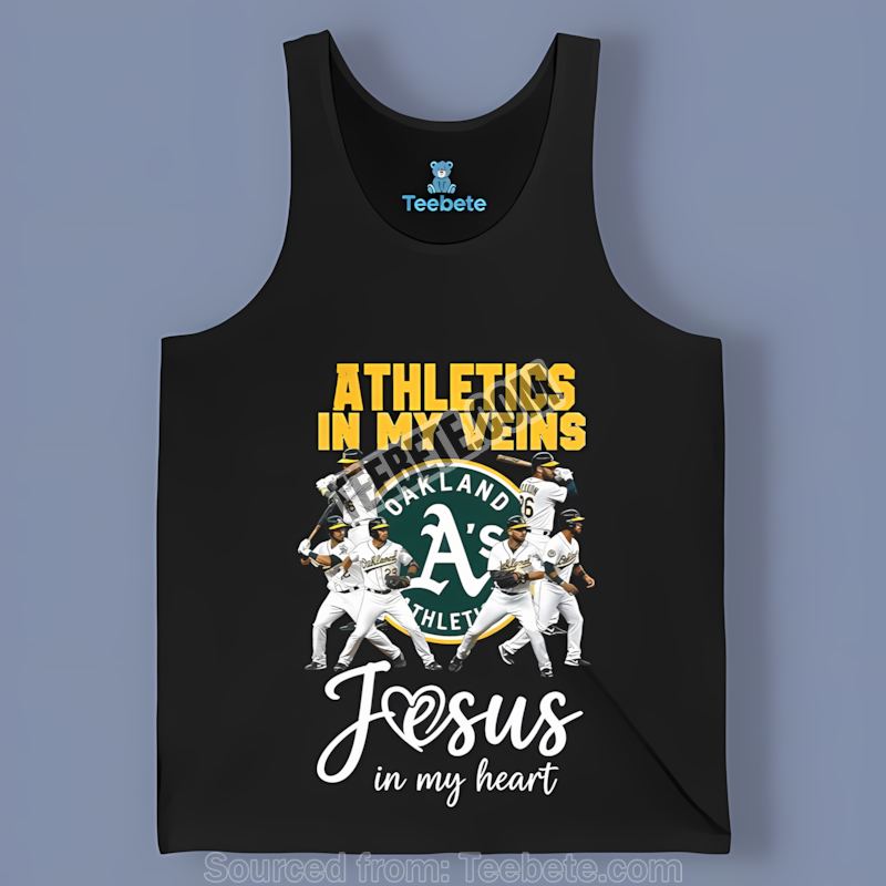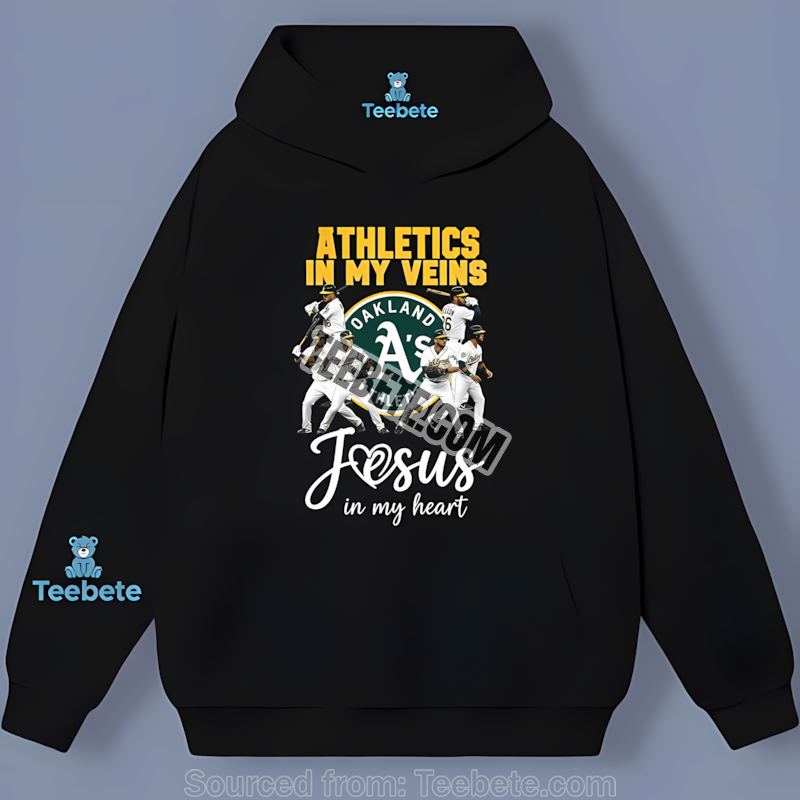 Show your unwavering faith and unwavering A’s loyalty with the Teebete In My Veins Jesus In My Heart Oakland Athletics Graphic Shirt. This design embodies the deep connection many fans have with their team, a bond often described as a religious experience. Remember those nail-biting playoff games, the roaring cheers of the crowd, the electrifying atmosphere of the Coliseum? This shirt captures that passionate devotion, blending your faith with your love for the green and gold.
