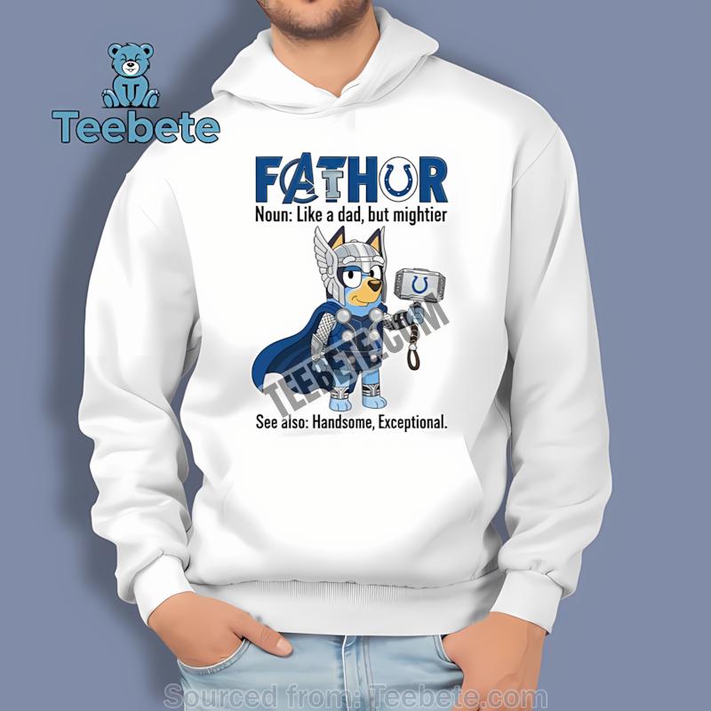Embrace your passion and celebrate your family bond with the Indianapolis Colts Bluey Fathor Football Dad Shirt. Add this must-have piece to your cart today and showcase your Colts pride like never before!