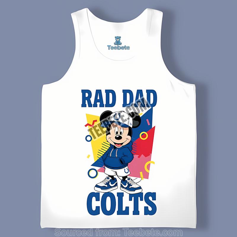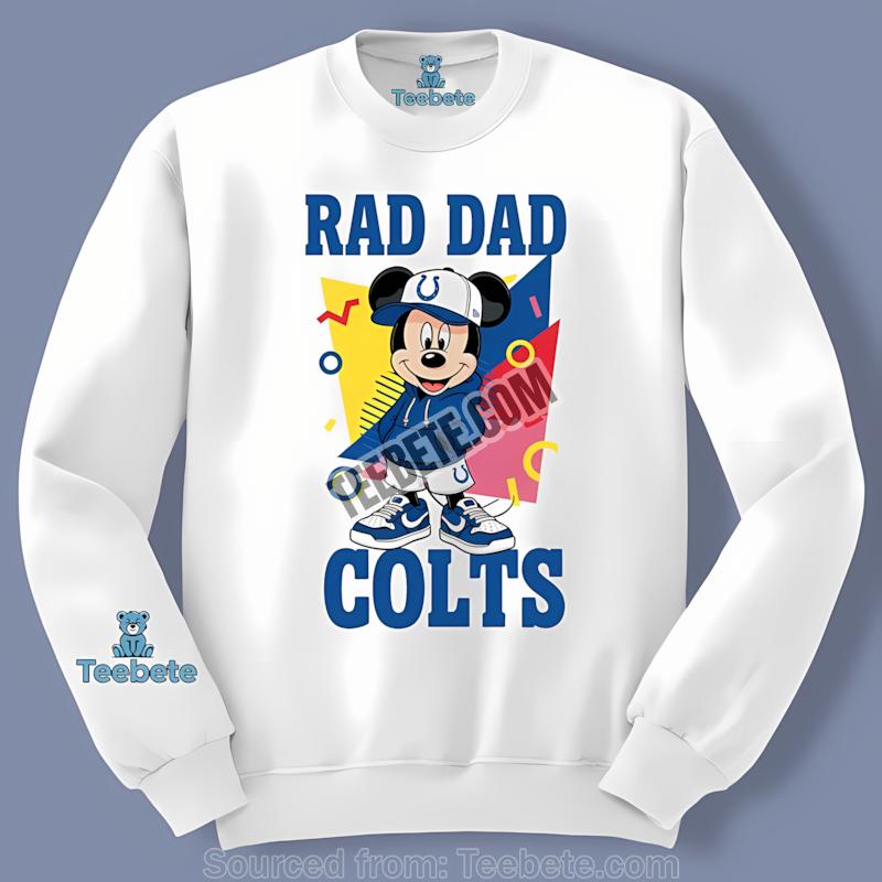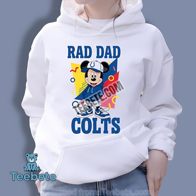 Embrace family moments and team spirit with this one-of-a-kind apparel piece. Celebrate your love for the Indianapolis Colts and the joyful journey of fatherhood. Purchase the Indianapolis Colts Mickey Mouse Rad Dad Shirt now from Teebete and wear your pride!