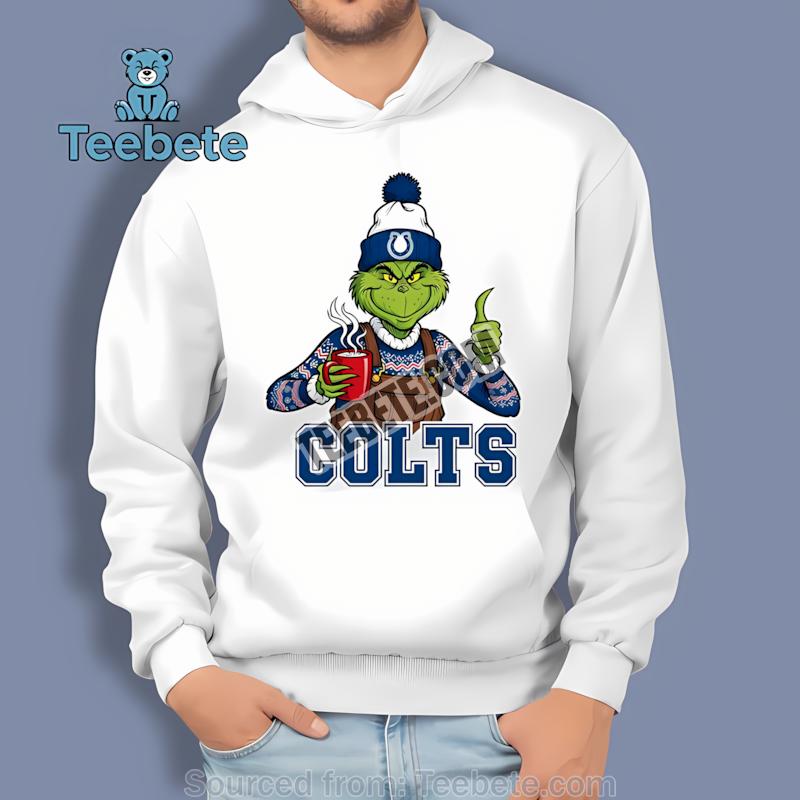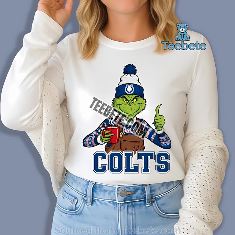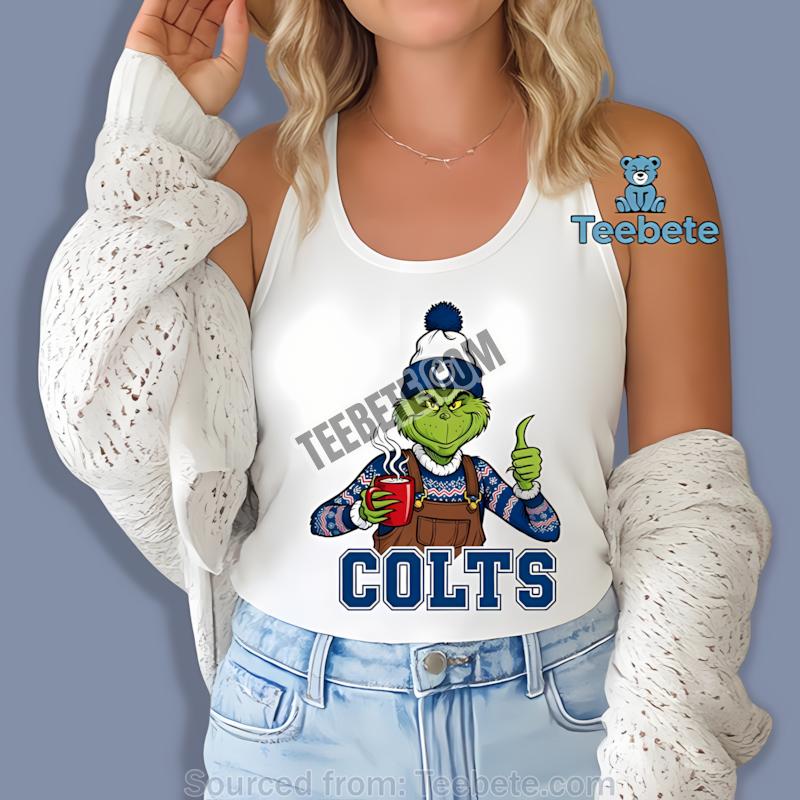 Crafted with exceptional attention to detail, this Indianapolis Colts Christmas shirt stands out for its brilliant print sharpness and vivid colors. The dynamic imagery of the Grinch enjoying his holiday spirit brings a playful twist, making it a perfect addition to your Colts collection. Made from breathable fabric, this shirt allows for comfort whether you’re at the game, celebrating with friends, or lounging at home. It’s the ideal choice for year-round wearability.