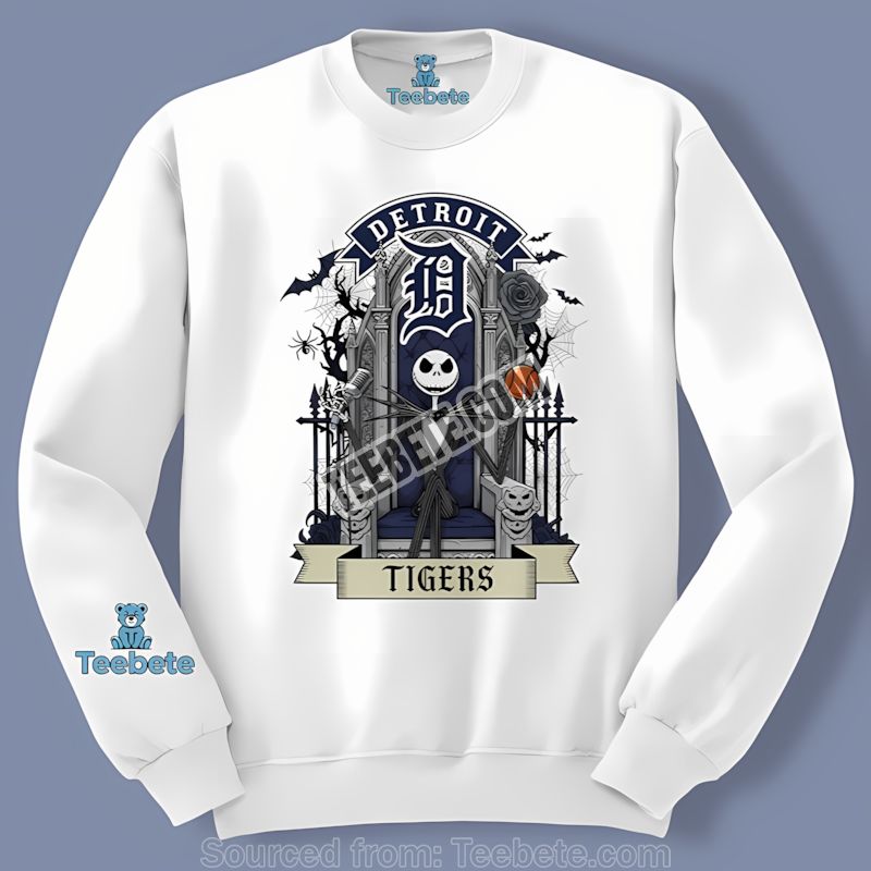 Don’t miss out on this incredible fusion of fandom and fright. Order your Jack Skellington Detroit Tigers Throne Graphic Shirt from Teebete today!