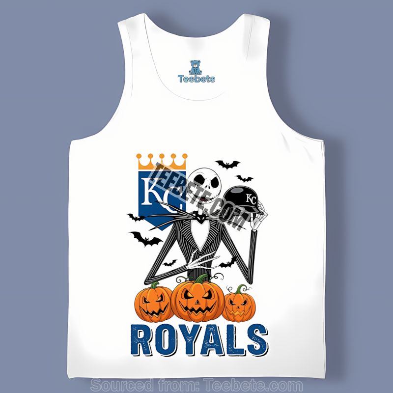 Show your team spirit this Halloween with the Jack Skellington Kansas City Royals Halloween Pumpkin Shirt! Order yours today and prepare to make a statement.