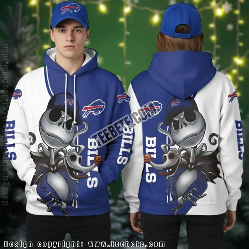 Product information "Buffalo Bills Jack Skellington Zero 3D Hoodie Printed Blue White"