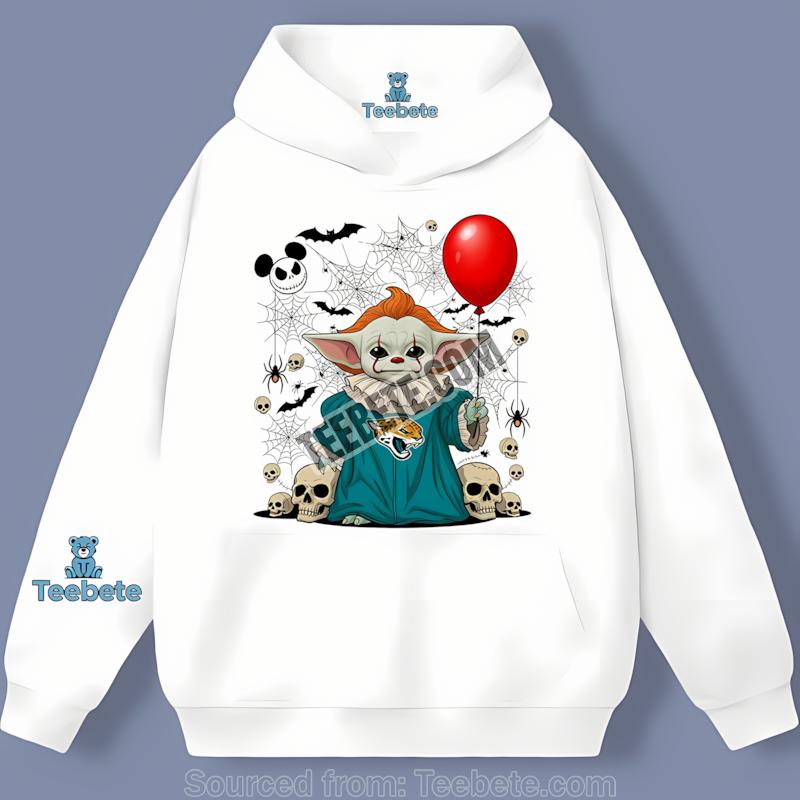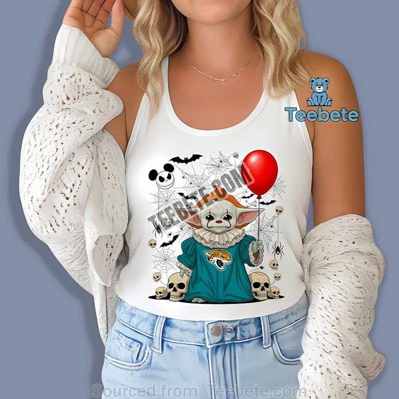 Don’t miss out on this limited-edition piece from Teebete. Embrace the fusion of sports and seasonal fun—add the Jacksonville Jaguars Baby Yoda Pennywise Halloween Shirt to your cart today and wear your fandom proudly!