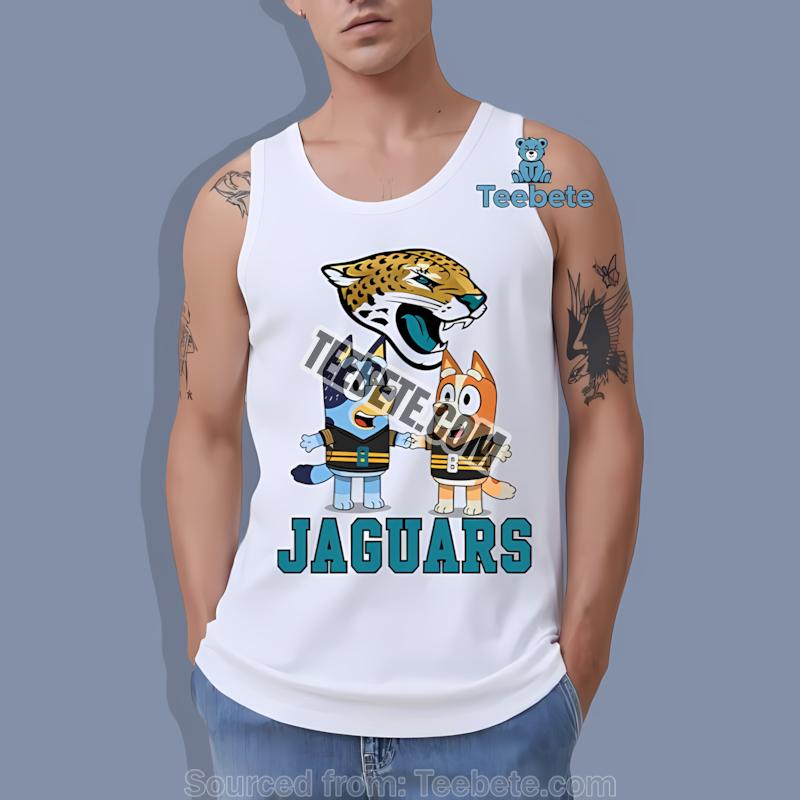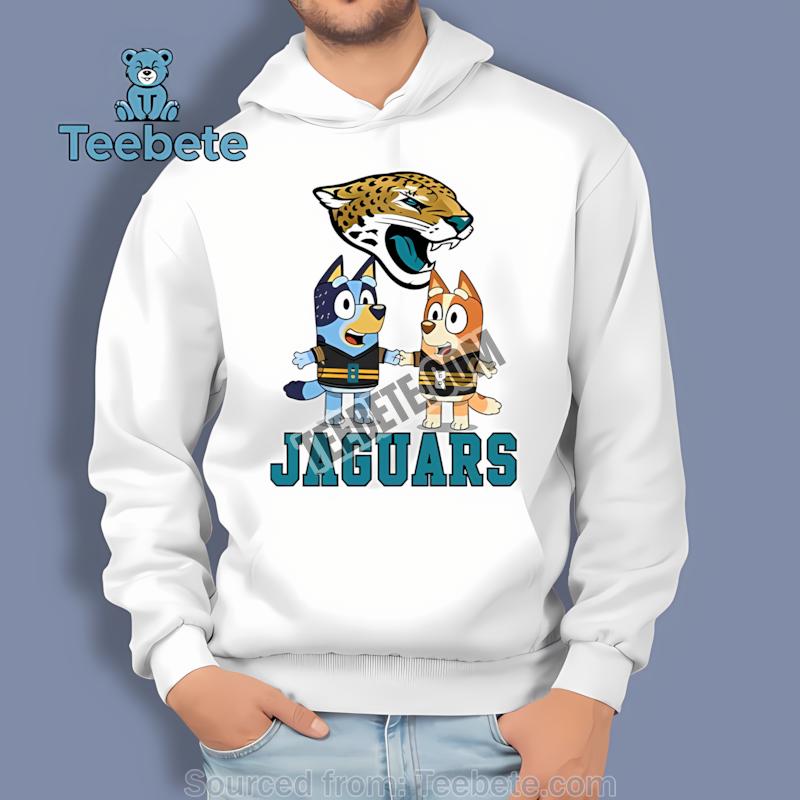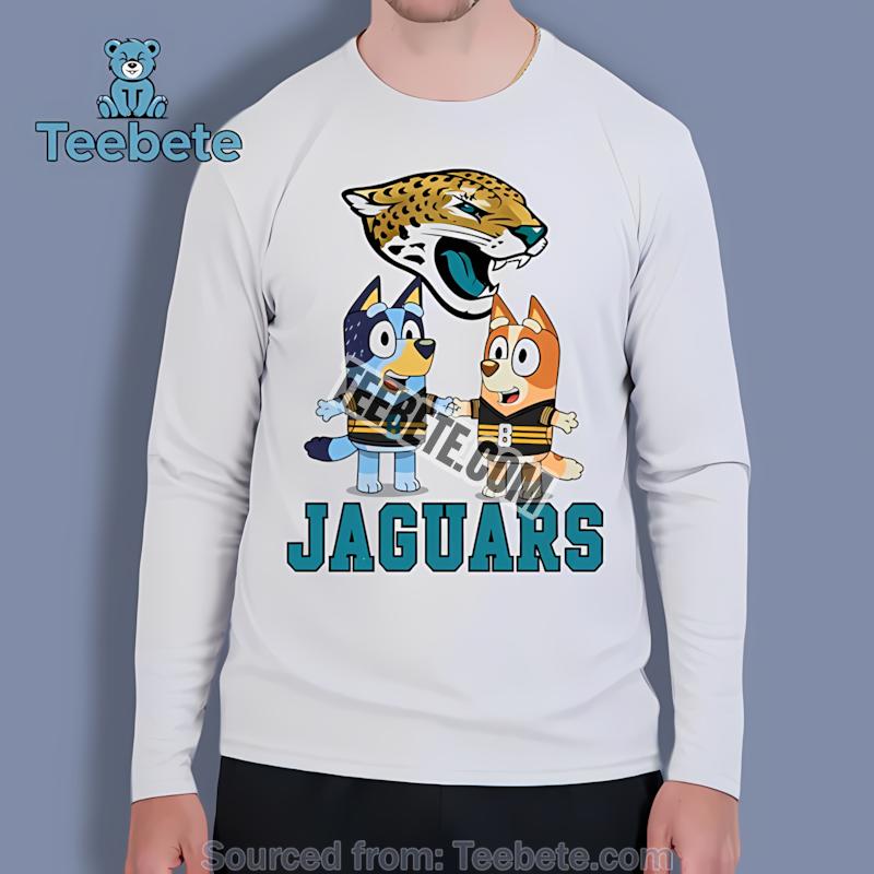 Don’t miss out on the fun and excitement—elevate your young fan’s wardrobe with the Bingo and Bluey NFL gear today! Embrace the world of imagination and team pride with Teebete, where every design tells a story. Get your Jacksonville Jaguars Bluey And Bingo Holding Hands Shirt now!