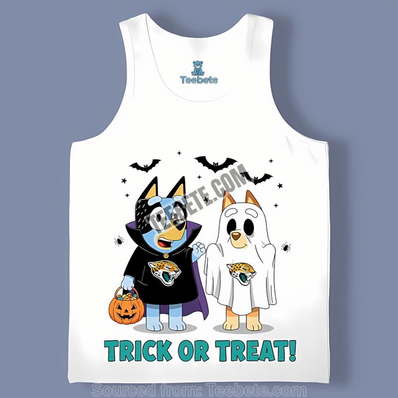Join in the festive fun and show off your team loyalty with this unique design. The Bluey Bingo Jaguars shirt Halloween is perfect for fans of all ages, creating memorable moments that blend football fandom with Halloween excitement.