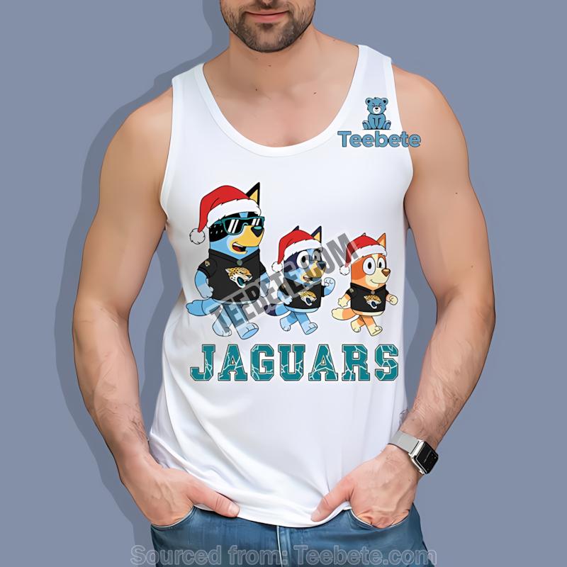 Step into the holiday season with style and purpose, embracing the connection that comes from a love of both family and sports. Jacksonville Jaguars Bluey Family Santa Hat Christmas Parade Shirt captures the joy of togetherness during festivities, echoing the spirit of the Jacksonville Jaguars. Inspired by a beloved family-friendly show, this design aims to enhance the joy of cheering for your favorite team while celebrating life’s special moments.
