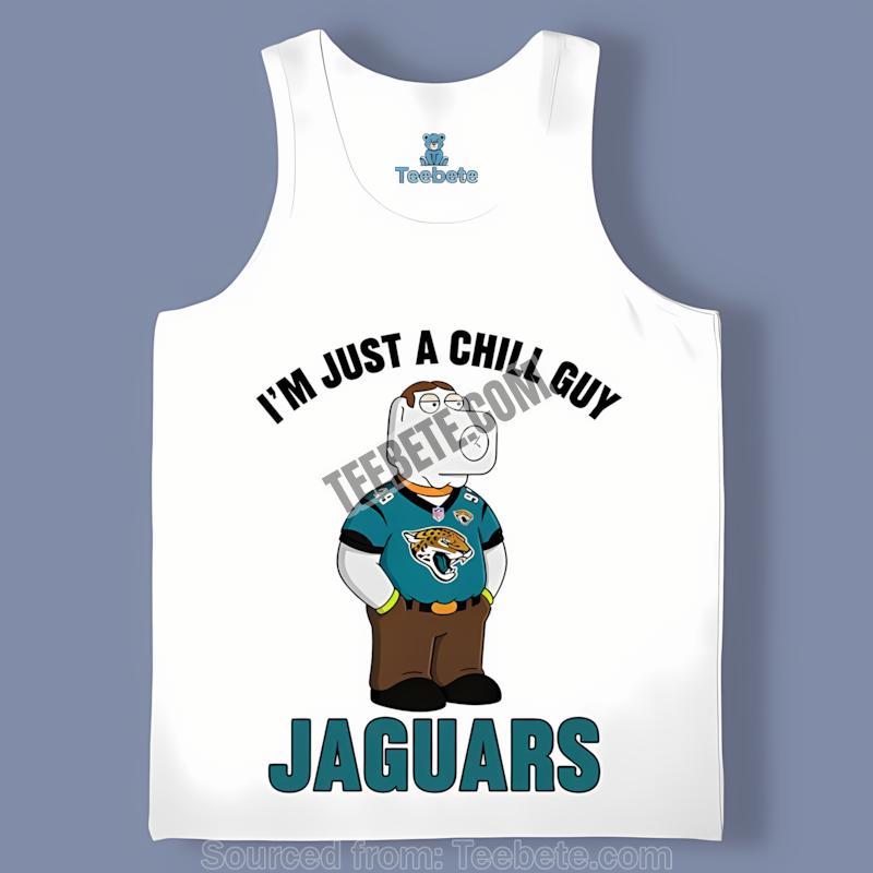 Transform your game day experience with this standout piece of Jaguars themed clothing item. Make a statement while feeling comfortable and stylish. Don’t miss out on the chance to show off your Jaguars pride—order the Jacksonville Jaguars Brian Griffin Chill Guy Shirt now and wear it with pride at the next big game!