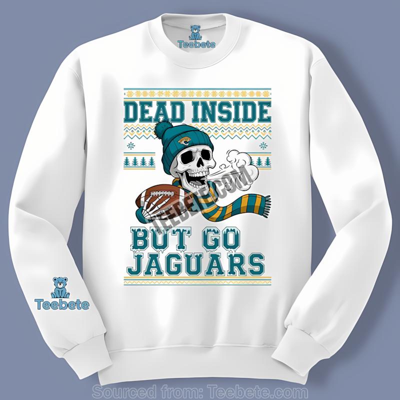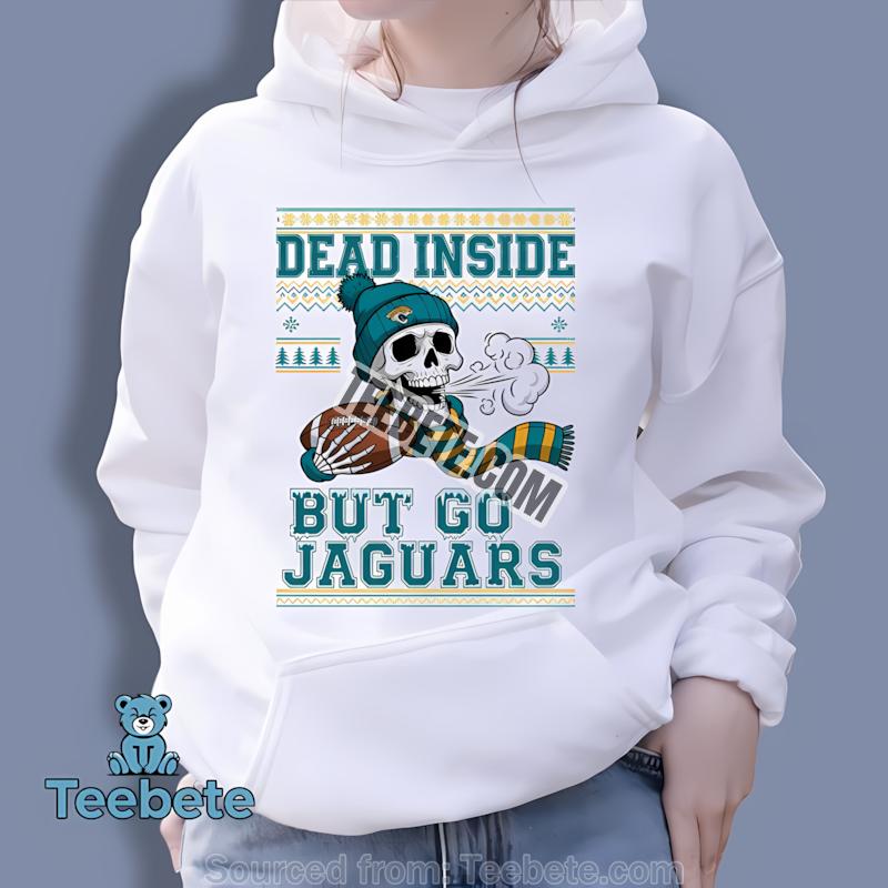 Don’t wait any longer. Show your team spirit and embrace the holiday season with the Jacksonville Jaguars Dead Inside But Go Jaguars Christmas Shirt. Order from Teebete today and wear your passion with pride!
